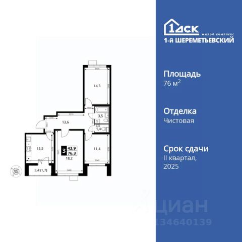 продается однокомнатная квартира с отделкой от застройщика на 2м этаже 12ти этажного дома в ЖК Пятницкие луга, корпус 1.1, секция 8,