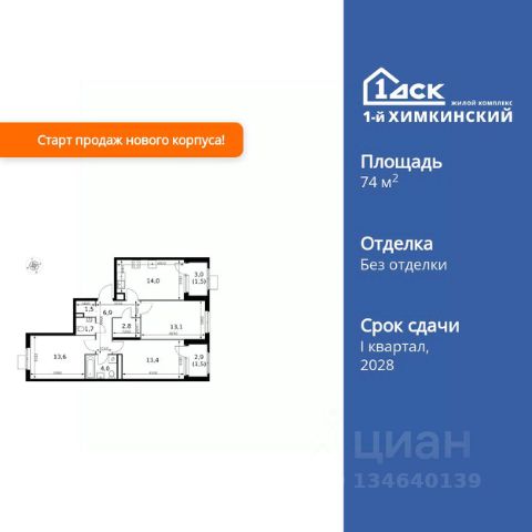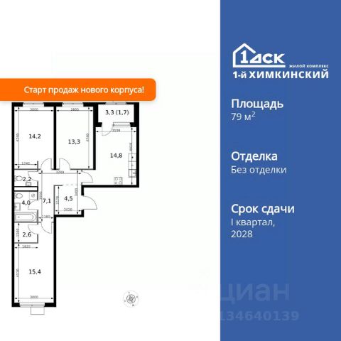 Прямая продажа от застройщика! Жилой Комплекс класса Комфорт. Продаётся 3-к квартира номер 233 общей площадью 79 кв.м. на 2-м этаже 8 этажного здания. Без отделки. Цена с учётом скидки. Особенности квартиры: - Организуем показ в удобное для вас время! - Мастер-зона с гардеробной. Просторное место для отдыха и удобного хранения вещей. - Просторная спальня, в которой можно разместить большую кровать. - Распашная планировка - отличное сочетание удобства и свободы. - Гостевой санузел - комфорт и удобство для ваших гостей. - Просторная кухня - место для семейных ужинов и кулинарных экспериментов. - Гардеробная - удобство для хранения и организации вещей. - Ниша под шкаф - компактное и удобное место для вещей. - Лоджия - уютное место для отдыха и тишины. Квартира без отделки. Чистый холст для воплощения интерьера вашей мечты. Информация о комплексе: "1-й Химкинский": гармония современного города и природы на 102 га у Химкинского леса и канала им. Москвы. Развитая инфраструктура: ТЦ, школы, спорткомплекс с термами и СПА, парк развлечений. Идеальный баланс для жизни в окружении зелени и городского комфорта. Транспортная доступность: ЖК "1-й Химкинский" дает возможность выбрать любой способ передвижения как до города, так и до самых разных объектов, которые могут представлять интерес для его жителей. Не важно, какой способ передвижения вы предпочитаете, успевать всегда и везде можно вне зависимости от выбора транспорта. - 8 мин. пешком (800 м) до остановки "Золотая Арка" -10 мин пешком (1 км) до остановки "Поворот на Ивакино" Внутренняя инфраструктура: Безопасность: закрытые дворы без машин, безбарьерная среда, сквозные подъезды, камеры на детских площадках с трансляцией на смартфон. Отдых: семейный парк развлечений, двухэтажный ТЦ 8 000 м² с фудкортом. Образование: 4 детских сада, 2 муниципальные школы. Спорт: закольцованный веломаршрут, спорткомплекс с термами, тренажерный зал, воркаут зоны. Инфраструктура: поликлиника со станцией скорой помощи, пожарное депо. Паркинг: подземный паркинг, кладовые на -1 этаже, СТО и автомойка на территории. Квартира без отделки - чистый холст для вашего интерьера. Квартира в новостройке комфорт-класса в городском округе Химках Московской области.