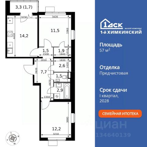 Продаётся 2-к квартира номер 260 общей площадью 57.2 кв.м. на 12-м этаже 17 этажного здания. Чистовая отделка. Цена с учётом скидки.