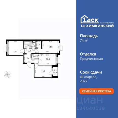 БЕЗ ПЕРВОНАЧАЛЬНОГО ВЗНОСА! • ИПОТЕКА 10% ДЛЯ ВСЕХ БЕЗ НАЦЕНОК • ДОСТУПНО ПО СЕМЕЙНОЙ ИПОТЕКЕ Прямая продажа от застройщика! Жилой Комплекс класса Комфорт. Продаётся квартира-студия номер 279 общей площадью 19.5 кв.м. на 4-м этаже 6 этажного здания. Отделка Whitebox. Цена с учётом скидки. Особенности квартиры: - Линейная планировка - максимальная функциональность и удобство. - Ниша под шкаф - компактное и удобное место для вещей. Квартира с предчистовой отделкой (White box). Вам не придется заниматься черновыми и трудоёмкими работы, а чистовую отделку и дизайн - сделайте на свой вкус. Информация о комплексе: Квартал класса комфорт плюс, где современное городское пространство граничит с удивительной природой вокруг. 1-й Химкинский расположен на территории в 102 га и органично вписан в природное окружение Химкинского леса и канала им. Москвы. В проекте предусмотрена богатая коммерческая инфраструктура с собственным торговым центром, общеобразовательные учреждения и социальные объекты. Изюминкой жилого комплекса будут спортивно-оздоровительный комплекс с термами и SPA и семейный парк развлечений. Транспортная доступность: ЖК "1-й Химкинский" дает возможность выбрать любой способ передвижения как до города, так и до самых разных объектов, которые могут представлять интерес для его жителей. Не важно, какой способ передвижения вы предпочитаете, успевать всегда и везде можно вне зависимости от выбора транспорта. - 8 мин. пешком (800 м) до остановки "Золотая Арка" -10 мин пешком (1 км) до остановки "Поворот на Ивакино" Внутренняя инфраструктура: - Безопасность: закрытые дворы без машин, безбарьерная среда и сквозные подъезды, камеры на детских площадках с возможностью трансляции на смартфоне - Идеальный отдых в кругу семьи: семейный парк развлечений на территории, торговый центр (2-х этажный) общей площадью более 8 тыс. кв. м с фудкортом - Образование: 3 детских сада и современная муниципальная школа на 2450 мест - Спортивная среда: закольцованный веломаршрут с навигацией, спортивный комплекс с термами, закрытый тренажерный зал и зоны ворк-аута - Социальные объекты: поликлиника со станцией скорой помощи, пожарное депо - Подземный паркинг и кладовые помещения на -1 этаже, станция техобслуживания и автомойка на территории Продается квартира в новостройке в микрорайоне Клязьма-Старбеево в городе Химки.