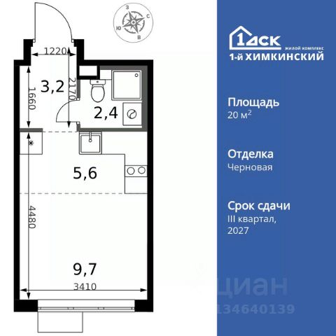 Прямая продажа от застройщика! Жилой Комплекс класса Комфорт. Продаётся квартира-студия номер 9 общей площадью 23.4 кв.м. на 2-м этаже 17 этажного дома. Отделка Whitebox. Цена с учётом скидки! Особенности квартиры: - Линейная планировка - максимальная функциональность и удобство. - Увеличенное количество окон - дополнительное освещение и свежий воздух. - Линейная кухня - функциональность и практичность в одном решении. - Ниша под шкаф - компактное и удобное место для вещей. Квартира с предчистовой отделкой (White box). Вам не придется заниматься черновыми и трудоёмкими работы, а чистовую отделку и дизайн - сделайте на свой вкус. Информация о комплексе: Квартал класса комфорт плюс, где современное городское пространство граничит с удивительной природой вокруг. 1-й Химкинский расположен на территории в 102 га и органично вписан в природное окружение Химкинского леса и канала им. Москвы. В проекте предусмотрена богатая коммерческая инфраструктура с собственным торговым центром, общеобразовательные учреждения и социальные объекты. Изюминкой жилого комплекса будут спортивно-оздоровительный комплекс с термами и SPA и семейный парк развлечений. Транспортная доступность: ЖК "1-й Химкинский" дает возможность выбрать любой способ передвижения как до города, так и до самых разных объектов, которые могут представлять интерес для его жителей. Не важно, какой способ передвижения вы предпочитаете, успевать всегда и везде можно вне зависимости от выбора транспорта. - 8 мин. пешком (800 м) до остановки "Золотая Арка" -10 мин пешком (1 км) до остановки "Поворот на Ивакино" Внутренняя инфраструктура: - Безопасность: закрытые дворы без машин, безбарьерная среда и сквозные подъезды, камеры на детских площадках с возможностью трансляции на смартфоне - Идеальный отдых в кругу семьи: семейный парк развлечений на территории, торговый центр (2-х этажный) общей площадью более 8 тыс. кв. м с фудкортом - Образование: 3 детских сада и современная муниципальная школа на 2450 мест - Спортивная среда: закольцованный веломаршрут с навигацией, спортивный комплекс с термами, закрытый тренажерный зал и зоны ворк-аута - Социальные объекты: поликлиника со станцией скорой помощи, пожарное депо - Подземный паркинг и кладовые помещения на -1 этаже, станция техобслуживания и автомойка на территории Продается квартира в новостройке в квартале Международный в микрорайоне Клязьма-Старбеево.
