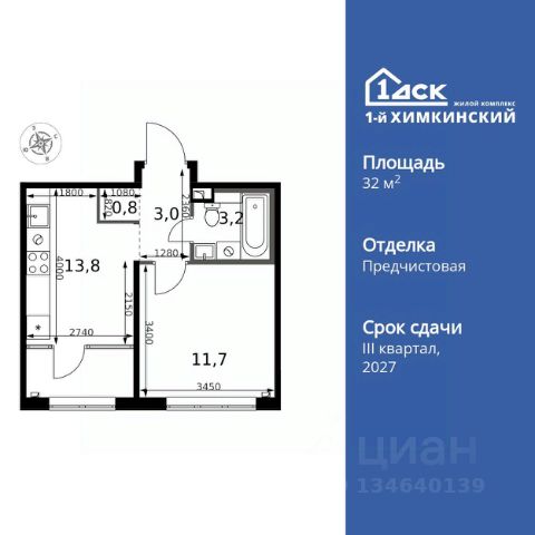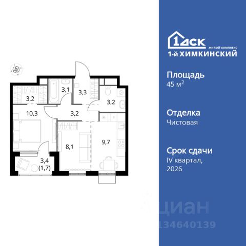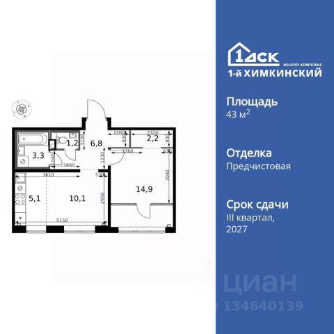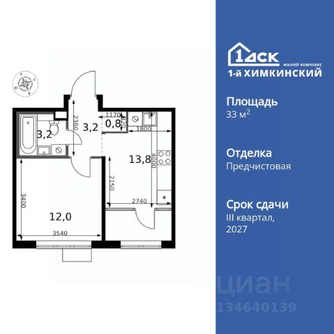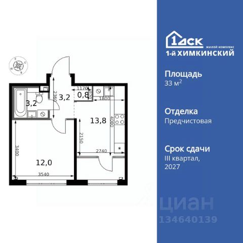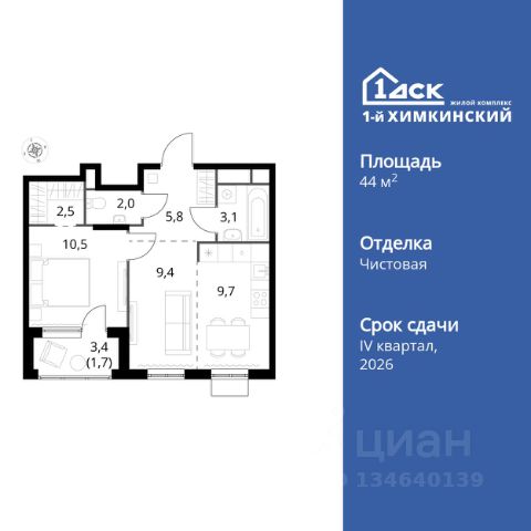 УСПЕЙ ПО СЕМЕЙНОЙ ИПОТЕКЕ БЕЗ НАЦЕНКИ! От 25 000 рублей в месяц! Прямая продажа от застройщика! Жилой Комплекс класса Комфорт. Продаётся квартира-студия номер 47 общей площадью 25.6 кв.м. на 5-м этаже 17 этажного здания. Отделка Whitebox. Цена с учётом скидки. Особенности квартиры: - Линейная планировка - максимальная функциональность и удобство. - Увеличенное количество окон - дополнительное освещение и свежий воздух. - Линейная кухня - функциональность и практичность в одном решении. - Ниша под шкаф - компактное и удобное место для вещей. Квартира с предчистовой отделкой (White box). Вам не придется заниматься черновыми и трудоёмкими работы, а чистовую отделку и дизайн - сделайте на свой вкус. Информация о комплексе: Квартал класса комфорт плюс, где современное городское пространство граничит с удивительной природой вокруг. 1-й Химкинский расположен на территории в 102 га и органично вписан в природное окружение Химкинского леса и канала им. Москвы. В проекте предусмотрена богатая коммерческая инфраструктура с собственным торговым центром, общеобразовательные учреждения и социальные объекты. Изюминкой жилого комплекса будут спортивно-оздоровительный комплекс с термами и SPA и семейный парк развлечений. Транспортная доступность: ЖК "1-й Химкинский" дает возможность выбрать любой способ передвижения как до города, так и до самых разных объектов, которые могут представлять интерес для его жителей. Не важно, какой способ передвижения вы предпочитаете, успевать всегда и везде можно вне зависимости от выбора транспорта. - 8 мин. пешком (800 м) до остановки "Золотая Арка" -10 мин пешком (1 км) до остановки "Поворот на Ивакино" Внутренняя инфраструктура: - Безопасность: закрытые дворы без машин, безбарьерная среда и сквозные подъезды, камеры на детских площадках с возможностью трансляции на смартфоне - Идеальный отдых в кругу семьи: семейный парк развлечений на территории, торговый центр (2-х этажный) общей площадью более 8 тыс. кв. м с фудкортом - Образование: 3 детских сада и современная муниципальная школа на 2450 мест - Спортивная среда: закольцованный веломаршрут с навигацией, спортивный комплекс с термами, закрытый тренажерный зал и зоны ворк-аута - Социальные объекты: поликлиника со станцией скорой помощи, пожарное депо - Подземный паркинг и кладовые помещения на -1 этаже, станция техобслуживания и автомойка на территории Продам квартиру в новостройке с отделкой в микрорайоне Клязьма-Старбеево в городе Химки.