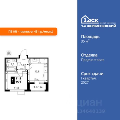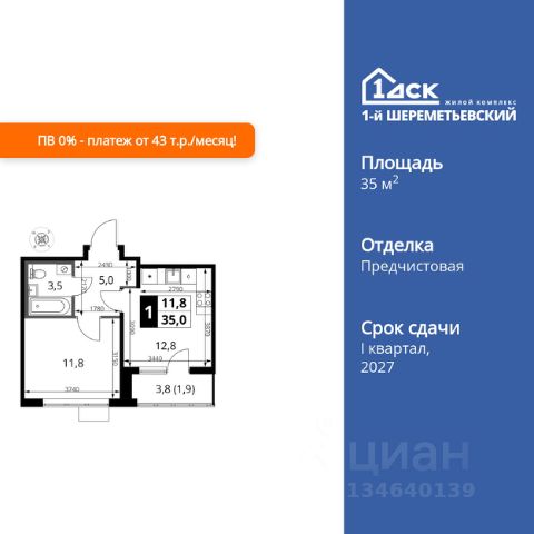 Прямая продажа от застройщика! Жилой Комплекс класса Комфорт Плюс. Продаётся квартира-студия номер 508 общей площадью 23 кв.м. на 4-м этаже 16 этажного здания. Чистовая отделка. Цена с учётом скидки. Особенности квартиры: - Линейная планировка - максимальная функциональность и удобство. - Увеличенная ширина окна/окон - больше света и визуального простора. - Гибкая планировка - создайте пространство по своему вкусу. - Можно оборудовать рабочее место - комфорт для работы и учёбы. - Линейная кухня - функциональность и практичность в одном решении. - Ниша под шкаф - компактное и удобное место для вещей. Информация о комплексе: ЖК 1-й Шереметьевский расположен в самом центре Подрезково, от него всего 6 минут пешком до одноименной станции ж/д и планируемой к открытию МЦД-3. В комплексе яркие и уютные, лобби, большая колясочная, лапомойка. Благодаря гостевому санузлу на 1 этаже прогулки станут по-настоящему долгими. Два лифта пассажирский и грузовой.Во всех корпусах 1-го Шереметьевского там устроены кладовые, а в корпусах 3-5 есть подземный паркинг. В ЖК 1-й Шереметьевский разнообразие площадей и планировок. Большие кухни-гостиные: в них два окна или больше. Во всех квартирах площадью от 40 кв.м. и выше спроектировано 2 санузла. Большие остекленные лоджии с отделкой. Система Умная квартира, реализованная в 1-м Шереметьевском. В каждой квартире установлены датчики протечек и запорные вентили с электроприводом, которые самостоятельно перекрывают воду в случае аварии. Мобильное приложение управляет группами электропотребителей: даже если вы забыли утюг включенным, можно обесточить его дистанционно. Транспортная доступность: - Общественный транспорт: До ближайших станций метро Планерной и Войковской около 40-50 минут на автобусе. 6 минут до ЖД станции Подрезково (МЦД-3) - Личный автотранспорт: Удобный выезд на Ленинградское шоссе позволяет быстро добираться до МКАДа и в центр Москвы, до платной трассы М11 и в аэропорт Шереметьево. 3 минуты до Ленинградского ш. 10 минут до платной трассы М11 15 минут до МКАД 20 минут до ст. м Войковская 25 минут до ст. м Планерная Внутренняя инфраструктура: 1-й Шереметьевский не только сокращает время, которое вы будете проводить в дороге. Но и предпринимает многое, чтобы вы меньше ездили и чаще ходили. На первых этажах корпусов разместятся фрешмаркеты и пункты выдачи маркетплейсов, салоны красоты и химчистки, кофейни и пекарни всё, что необходимо изо дня в день, но не заслуживает отдельной поездки на машине или такси. В квартале будут построены собственные школа и детский сад. Школа рассчитана на 1100 учеников. В ней будут 25-метровый бассейн и просторный атриум, медиатека. Детский сад рассчитана на 400 малышей. Здесь стильный дизайн и комфортные группы, большой физкультурный зал и просторный зал для занятия музыкой. Дворы без машин. Безопасные детские площадки. Вдоль корпусов организованы зоны тихого отдыха: детский гомон с далеких каруселей и горок не достиг Купить квартиру в новостройке с отделкой в микрорайоне Подрезково в городе Химки.