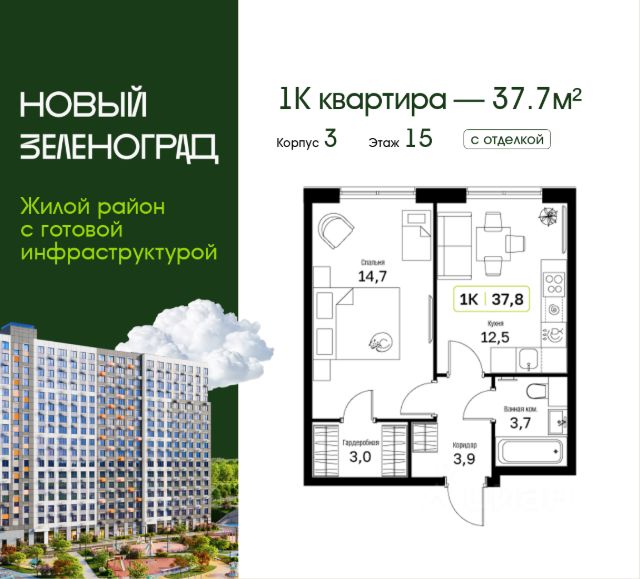 Квартира в ЖК "Новый Зеленоград" | 2-комнатная | 50.9 м² | 8 этаж из 18 | Срок сдачи — IV кв. 2026 года Откройте для себя комфорт и экологию в современном жилом комплексе "Новый Зеленоград" в окружении лесов и водоемов всего в 500 метрах от Зеленограда. Экологичная локация: Живите в гармонии с природой, не отказываясь от удобств города! Заповедные леса и водоемы — идеальное место для прогулок и активного отдыха 5 минут до Зеленограда — развитая городская инфраструктура 25 минут до МКАД — удобный выезд Современный комфорт: Архитектура с яркими фасадами и большими окнами Кладовые и просторные входные группы Высокие потолки (2,6 м), продуманные планировки с просторными комнатами и гардеробными Квартиры без отделки или с готовым ремонтом Развитая инфраструктура: Уже открыты детский сад и начальная школа с современными образовательными программами Магазины, кафе, аптеки, пункты выдачи и сервисы на первых этажах Игровые площадки для детей разных возрастов Спортивные площадки и футбольное поле, скейтпарк и зона воркаут для активного образа жизни Безопасность и удобство: Благоустроенные дворы без машин, видеонаблюдение Автомобильная парковка на территории Собственная управляющая компания Финансовые условия и программы покупки: Все виды ипотеки, включая гос. поддержку с высоким процентом одобрения Рассрочка до 3 лет — покупка квартиры стала еще доступнее ЖК "Новый Зеленоград" — идеальный выбор для тех, кто ценит экологию, комфорт, развитую инфраструктуру и выгодные условия покупки. Узнайте подробности и забронируйте квартиру у наших менеджеров!