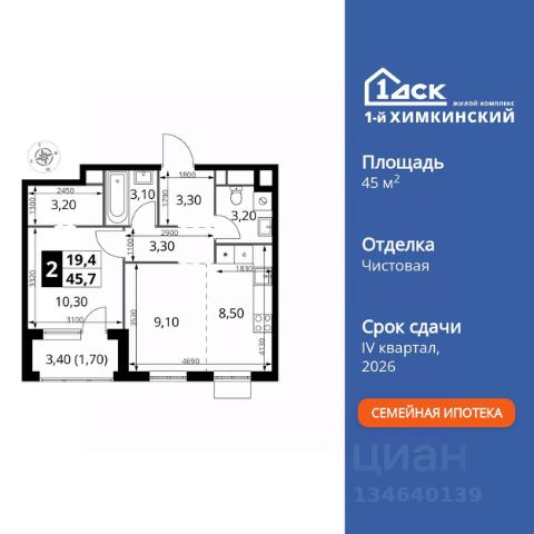 • ИПОТЕКА 10% ДЛЯ ВСЕХ БЕЗ НАЦЕНОК • ДОСТУПНО ПО СЕМЕЙНОЙ ИПОТЕКЕ Прямая продажа от застройщика! Жилой Комплекс класса Комфорт. Продаётся 2-к квартира номер 359 общей площадью 48.5 кв.м. на 3-м этаже 17 этажного здания. Чистовая отделка. Цена с учётом скидки. Особенности квартиры: - Линейная планировка - максимальная функциональность и удобство. - Раздельный санузел - больше удобства для всех членов семьи. - Просторная кухня - место для семейных ужинов и кулинарных экспериментов. - Гардеробная - удобство для хранения и организации вещей. - Тёплая лоджия - пространство для отдыха в любое время года. Информация о комплексе: Квартал класса комфорт плюс, где современное городское пространство граничит с удивительной природой вокруг. 1-й Химкинский расположен на территории в 102 га и органично вписан в природное окружение Химкинского леса и канала им. Москвы. В проекте предусмотрена богатая коммерческая инфраструктура с собственным торговым центром, общеобразовательные учреждения и социальные объекты. Изюминкой жилого комплекса будут спортивно-оздоровительный комплекс с термами и SPA и семейный парк развлечений. Транспортная доступность: ЖК "1-й Химкинский" дает возможность выбрать любой способ передвижения как до города, так и до самых разных объектов, которые могут представлять интерес для его жителей. Не важно, какой способ передвижения вы предпочитаете, успевать всегда и везде можно вне зависимости от выбора транспорта. - 8 мин. пешком (800 м) до остановки "Золотая Арка" -10 мин пешком (1 км) до остановки "Поворот на Ивакино" Внутренняя инфраструктура: - Безопасность: закрытые дворы без машин, безбарьерная среда и сквозные подъезды, камеры на детских площадках с возможностью трансляции на смартфоне - Идеальный отдых в кругу семьи: семейный парк развлечений на территории, торговый центр (2-х этажный) общей площадью более 8 тыс. кв. м с фудкортом - Образование: 3 детских сада и современная муниципальная школа на 2450 мест - Спортивная среда: закольцованный веломаршрут с навигацией, спортивный комплекс с термами, закрытый тренажерный зал и зоны ворк-аута - Социальные объекты: поликлиника со станцией скорой помощи, пожарное депо - Подземный паркинг и кладовые помещения на -1 этаже, станция техобслуживания и автомойка на территории Квартира с отделкой в Химках.