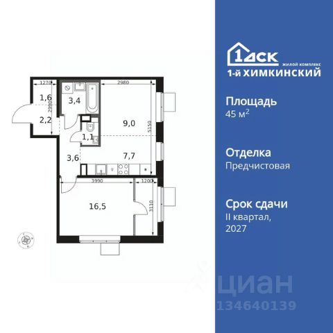 Прямая продажа от застройщика! Жилой Комплекс класса Комфорт. Продаётся квартира-студия номер 345 общей площадью 20.9 кв.м. на 6-м этаже 6 этажного здания. Отделка Whitebox. Цена с учётом скидки. Особенности квартиры: - Линейная планировка - максимальная функциональность и удобство. - Увеличенная высота потолков - ощущение простора и легкости. Квартира с предчистовой отделкой (White box). Вам не придется заниматься черновыми и трудоёмкими работы, а чистовую отделку и дизайн - сделайте на свой вкус. Информация о комплексе: Квартал класса комфорт плюс, где современное городское пространство граничит с удивительной природой вокруг. 1-й Химкинский расположен на территории в 102 га и органично вписан в природное окружение Химкинского леса и канала им. Москвы. В проекте предусмотрена богатая коммерческая инфраструктура с собственным торговым центром, общеобразовательные учреждения и социальные объекты. Изюминкой жилого комплекса будут спортивно-оздоровительный комплекс с термами и SPA и семейный парк развлечений. Транспортная доступность: ЖК "1-й Химкинский" дает возможность выбрать любой способ передвижения как до города, так и до самых разных объектов, которые могут представлять интерес для его жителей. Не важно, какой способ передвижения вы предпочитаете, успевать всегда и везде можно вне зависимости от выбора транспорта. - 8 мин. пешком (800 м) до остановки "Золотая Арка" -10 мин пешком (1 км) до остановки "Поворот на Ивакино" Внутренняя инфраструктура: - Безопасность: закрытые дворы без машин, безбарьерная среда и сквозные подъезды, камеры на детских площадках с возможностью трансляции на смартфоне - Идеальный отдых в кругу семьи: семейный парк развлечений на территории, торговый центр (2-х этажный) общей площадью более 8 тыс. кв. м с фудкортом - Образование: 3 детских сада и современная муниципальная школа на 2450 мест - Спортивная среда: закольцованный веломаршрут с навигацией, спортивный комплекс с термами, закрытый тренажерный зал и зоны ворк-аута - Социальные объекты: поликлиника со станцией скорой помощи, пожарное депо - Подземный паркинг и кладовые помещения на -1 этаже, станция техобслуживания и автомойка на территории