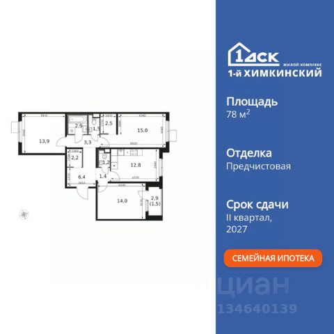 БЕЗ ПЕРВОНАЧАЛЬНОГО ВЗНОСА! ТОЛЬКО 4 ДНЯ ДО 10.02 • Дополнительная скидка 10% • Ставка 10% по стандартной ипотеке для всех без наценок • Ставка 3,5% по семейной ипотеке Успейте купить выгодно! Прямая продажа от застройщика! Жилой Комплекс класса Комфорт. Продаётся 2-к квартира номер 40 общей площадью 46 кв.м. на 4-м этаже 17 этажного здания. Отделка Whitebox. Цена с учётом скидки. Особенности квартиры: - Угловая планировка - больше пространства для ваших идей. - Окно в ванной - натуральное освещение для уюта и комфорта. - Увеличенное количество окон - дополнительное освещение и свежий воздух. - Раздельный санузел - больше удобства для всех членов семьи. - Евроформат - просторное и удобное жилье с отличной планировкой. - Линейная кухня - функциональность и практичность в одном решении. - Гардеробная - удобство для хранения и организации вещей. - Ниша под шкаф - компактное и удобное место для вещей. - Лоджия - уютное место для отдыха и тишины. Квартира с предчистовой отделкой (White box). Вам не придется заниматься черновыми и трудоёмкими работы, а чистовую отделку и дизайн - сделайте на свой вкус. Информация о комплексе: Квартал класса комфорт плюс, где современное городское пространство граничит с удивительной природой вокруг. 1-й Химкинский расположен на территории в 102 га и органично вписан в природное окружение Химкинского леса и канала им. Москвы. В проекте предусмотрена богатая коммерческая инфраструктура с собственным торговым центром, общеобразовательные учреждения и социальные объекты. Изюминкой жилого комплекса будут спортивно-оздоровительный комплекс с термами и SPA и семейный парк развлечений. Транспортная доступность: ЖК "1-й Химкинский" дает возможность выбрать любой способ передвижения как до города, так и до самых разных объектов, которые могут представлять интерес для его жителей. Не важно, какой способ передвижения вы предпочитаете, успевать всегда и везде можно вне зависимости от выбора транспорта. - 8 мин. пешком (800 м) до остановки "Золотая Арка" -10 мин пешком (1 км) до остановки "Поворот на Ивакино" Внутренняя инфраструктура: - Безопасность: закрытые дворы без машин, безбарьерная среда и сквозные подъезды, камеры на детских площадках с возможностью трансляции на смартфоне - Идеальный отдых в кругу семьи: семейный парк развлечений на территории, торговый центр (2-х этажный) общей площадью более 8 тыс. кв. м с фудкортом - Образование: 3 детских сада и современная муниципальная школа на 2450 мест - Спортивная среда: закольцованный веломаршрут с навигацией, спортивный комплекс с термами, закрытый тренажерный зал и зоны ворк-аута - Социальные объекты: поликлиника со станцией скорой помощи, пожарное депо - Подземный паркинг и кладовые помещения на -1 этаже, станция техобслуживания и автомойка на территории