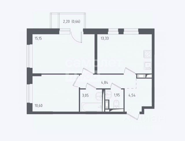 Гардеробная, спальня, гостиная, ванная, туалет, кухня и балкон. Общая площадь 58 метров. Квартира полностью меблирована и оборудована. В прихожей участок теплого пола для сушки обуви в межсезонье и зимой.