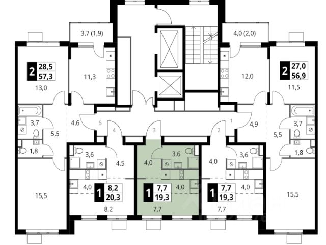 • Пол — ламинат в жилой зоне, керамогранит в санузле