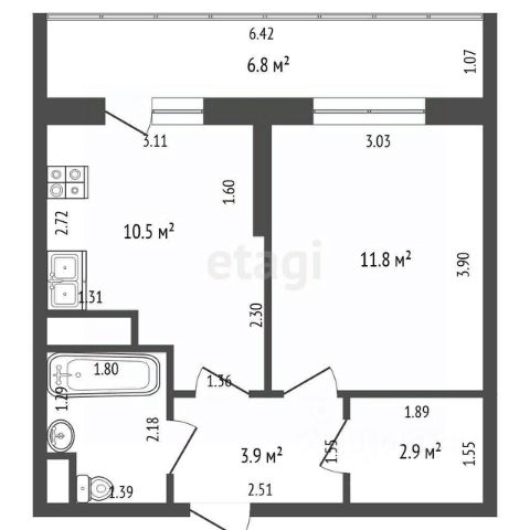 * ванная комната (совместно с санузлом) выполнена лаконично, позволяет выполнять все необходимые операции без излишних затруднений; как преимущество чугунная 2-х метровая ванна, которая хорошо нагревается и сохраняет тепло.