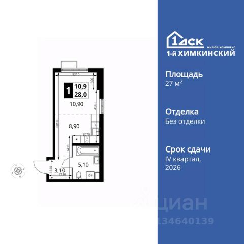 УСПЕЙ ПО СЕМЕЙНОЙ ИПОТЕКЕ БЕЗ НАЦЕНКИ! От 25 000 рублей в месяц! Прямая продажа от застройщика! Жилой Комплекс класса Комфорт. Продаётся квартира-студия номер 215 общей площадью 23.2 кв.м. на 6-м этаже 16 этажного здания. Без отделки. Особенности квартиры: - Линейная планировка - максимальная функциональность и удобство. - Ниша под шкаф - компактное и удобное место для вещей. Информация о комплексе: Квартал класса комфорт плюс, где современное городское пространство граничит с удивительной природой вокруг. 1-й Химкинский расположен на территории в 102 га и органично вписан в природное окружение Химкинского леса и канала им. Москвы. В проекте предусмотрена богатая коммерческая инфраструктура с собственным торговым центром, общеобразовательные учреждения и социальные объекты. Изюминкой жилого комплекса будут спортивно-оздоровительный комплекс с термами и SPA и семейный парк развлечений. Транспортная доступность: ЖК "1-й Химкинский" дает возможность выбрать любой способ передвижения как до города, так и до самых разных объектов, которые могут представлять интерес для его жителей. Не важно, какой способ передвижения вы предпочитаете, успевать всегда и везде можно вне зависимости от выбора транспорта. - 8 мин. пешком (800 м) до остановки "Золотая Арка" -10 мин пешком (1 км) до остановки "Поворот на Ивакино" Внутренняя инфраструктура: - Безопасность: закрытые дворы без машин, безбарьерная среда и сквозные подъезды, камеры на детских площадках с возможностью трансляции на смартфоне - Идеальный отдых в кругу семьи: семейный парк развлечений на территории, торговый центр (2-х этажный) общей площадью более 8 тыс. кв. м с фудкортом - Образование: 3 детских сада и современная муниципальная школа на 2450 мест - Спортивная среда: закольцованный веломаршрут с навигацией, спортивный комплекс с термами, закрытый тренажерный зал и зоны ворк-аута - Социальные объекты: поликлиника со станцией скорой помощи, пожарное депо - Подземный паркинг и кладовые помещения на -1 этаже, станция техобслуживания и автомойка на территории Продам квартиру-студию в дешевой новостройке в Химках.