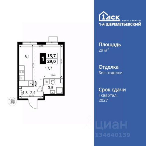 Прямая продажа от застройщика! Жилой Комплекс класса Комфорт. Продаётся квартира-студия номер 66 общей площадью 24.6 кв.м. на 10-м этаже 17 этажного здания. Без отделки. Особенности квартиры: - Линейная планировка - максимальная функциональность и удобство. - Увеличенное количество окон - дополнительное освещение и свежий воздух. - Ниша под шкаф - компактное и удобное место для вещей. Информация о комплексе: Квартал класса комфорт плюс, где современное городское пространство граничит с удивительной природой вокруг. 1-й Химкинский расположен на территории в 102 га и органично вписан в природное окружение Химкинского леса и канала им. Москвы. В проекте предусмотрена богатая коммерческая инфраструктура с собственным торговым центром, общеобразовательные учреждения и социальные объекты. Изюминкой жилого комплекса будут спортивно-оздоровительный комплекс с термами и SPA и семейный парк развлечений. Транспортная доступность: ЖК "1-й Химкинский" дает возможность выбрать любой способ передвижения как до города, так и до самых разных объектов, которые могут представлять интерес для его жителей. Не важно, какой способ передвижения вы предпочитаете, успевать всегда и везде можно вне зависимости от выбора транспорта. - 8 мин. пешком (800 м) до остановки "Золотая Арка" -10 мин пешком (1 км) до остановки "Поворот на Ивакино" Внутренняя инфраструктура: - Безопасность: закрытые дворы без машин, безбарьерная среда и сквозные подъезды, камеры на детских площадках с возможностью трансляции на смартфоне - Идеальный отдых в кругу семьи: семейный парк развлечений на территории, торговый центр (2-х этажный) общей площадью более 8 тыс. кв. м с фудкортом - Образование: 3 детских сада и современная муниципальная школа на 2450 мест - Спортивная среда: закольцованный веломаршрут с навигацией, спортивный комплекс с термами, закрытый тренажерный зал и зоны ворк-аута - Социальные объекты: поликлиника со станцией скорой помощи, пожарное депо - Подземный паркинг и кладовые помещения на -1 этаже, станция техобслуживания и автомойка на территории