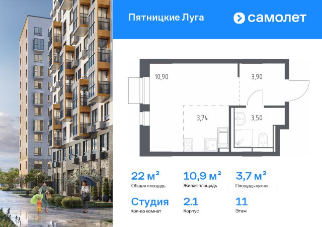 Продается студия в жилом комплексе комфорт класса "Химки Тайм" площадью 23.50 кв.м. на 11 этаже 20 этажного дома. Квартира с отделкой, окна выходят во двор и на улицу.