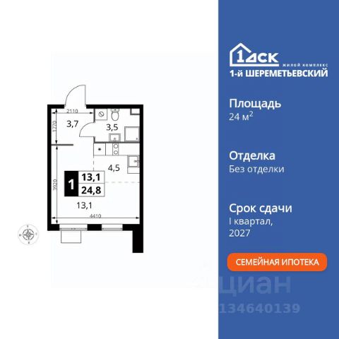 Продается квартира-студия в жилом комплексе комфорт класса "Химки Тайм" площадью 23.77 кв.м на 12 этаже 20 этажного дома. Квартира с полной отделкой, окна выходят во двор. Прекрасный выбор для первой квартиры или инвестиций. Комфортные квартиры по комфортной цене! • Скидки на квартиры до 17% (стоимость квартиры в карточке указана с учетом скидки). • Семейная ипотека без дополнительных комиссий • IT ипотека без дополнительных комиссий • Квартиры "под ключ", сдаются с чистовой отделкой, в светлых и темных тонах на ваш выбор. • Точечная застройка с готовым ремонтом: выбирайте дом, где слышно птиц, а не стройку. Живите ДОМА, а не на стройплощадке. • Бесплатный наземный паркинг грамотное планирование потоков машин и пешеходов позволяют сделать дом удобным для всех. Не нужно переплачивать за подземный гараж. • Прекрасный выбор для первой квартиры или инвестиций. В 20252027 недалеко будет запущен Индустриальный парк "Молжаниново" технологичный объект, который станет еще одним катализатором развития района, предоставит рабочие места высококвалифицированным специалистам и подстегнёт спрос на покупку и аренду квартир. Успейте вложиться по выгодной цене. До центра Москвы на учебу, работу и по любому поводу — это быстро! • 5 мин пешком до скоростной линии МЦД-3 "Молжаниново". • От 30 мин на автобусе или маршрутке до ст.м. "Сходненская", "Речной вокзал". Остановка общественного транспорта "Филино" около ЖК. • На автомобиле удобный выезд на Ленинградское шоссе: до центра Москвы — 40 минут, до международного аэропорта Шереметьево — 20 минут. В состав чистовой отделки входит всё, что нужно для комфорта. Вкладывайте в себя и в детей, а не в ремонт! • Выравнивание полов, стен и потолков • Покрытие полов ламинатом • Поклейка обоев • Монтаж натяжных потолков с установкой светильников • Установка межкомнатных дверей • Установка радиаторов отопления • Выкладывание плиточного "фартука" на кухне • Установка водопроводных и канализационных труб в "мокрой зоне" на кухне • Укладывание плитки в ванной комнате • Установка сантехники • Установка счетчиков • Разводка электросети • Монтаж розеток, выключателей Архитектура на многие десятилетия! • Дома строятся по монолитной технологии с вентилируемыми фасадами. В квартирах будет комфортный микроклимат в любой сезон, а корпуса сохранят достойный внешний вид в течение долгого времени. • В каждом корпусе один подъезд и 3 лифта это не человейник. • В каждом подъезде есть отдельная комната для хранения спортивного оборудования. Инфраструктура на территории качественный дом с понятной "начинкой". • На первых этажах расположатся магазины, салоны красоты и кафе • Внутри ЖК будет муниципальный детский сад • 2 спортивные площадки • 2 площадки для отдыха взрослого населения • 4 детские игровые площадки Собственный паркинг ваша машина около вашего дома. • В ЖК своя бесплатная наземная автостоянка на 210 машиномест Окружение выбирайте ЖК, где всё готово