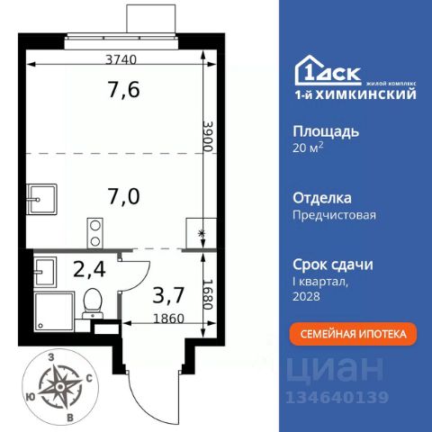 БЕЗ ПЕРВОНАЧАЛЬНОГО ВЗНОСА! Прямая продажа от застройщика! Жилой Комплекс класса Комфорт. Продаётся квартира-студия номер 172 общей площадью 20.7 кв.м. на 13-м этаже 17 этажного здания. Предчистовая отделка. Цена с учётом скидки. Особенности квартиры: - Организуем показ в удобное для вас время! - Линейная планировка - максимальная функциональность и удобство. - Ниша под шкаф - компактное и удобное место для вещей. Квартира с предчистовой отделкой. Вам не придется заниматься черновыми и трудоёмкими работы, а чистовую отделку и дизайн - сделайте на свой вкус. Информация о комплексе: "1-й Химкинский": гармония современного города и природы на 102 га у Химкинского леса и канала им. Москвы. Развитая инфраструктура: ТЦ, школы, спорткомплекс с термами и СПА, парк развлечений. Идеальный баланс для жизни в окружении зелени и городского комфорта. Транспортная доступность: ЖК "1-й Химкинский" дает возможность выбрать любой способ передвижения как до города, так и до самых разных объектов, которые могут представлять интерес для его жителей. Не важно, какой способ передвижения вы предпочитаете, успевать всегда и везде можно вне зависимости от выбора транспорта. - 8 мин. пешком (800 м) до остановки "Золотая Арка" -10 мин пешком (1 км) до остановки "Поворот на Ивакино" Внутренняя инфраструктура: Безопасность: закрытые дворы без машин, безбарьерная среда, сквозные подъезды, камеры на детских площадках с трансляцией на смартфон. Отдых: семейный парк развлечений, двухэтажный ТЦ 8 000 м² с фудкортом. Образование: 4 детских сада, 2 муниципальные школы. Спорт: закольцованный веломаршрут, спорткомплекс с термами, тренажерный зал, воркаут зоны. Инфраструктура: поликлиника со станцией скорой помощи, пожарное депо. Паркинг: подземный паркинг, кладовые на -1 этаже, СТО и автомойка на территории. Квартира с предчистовой отделкой - ваш дизайн без черновых работ