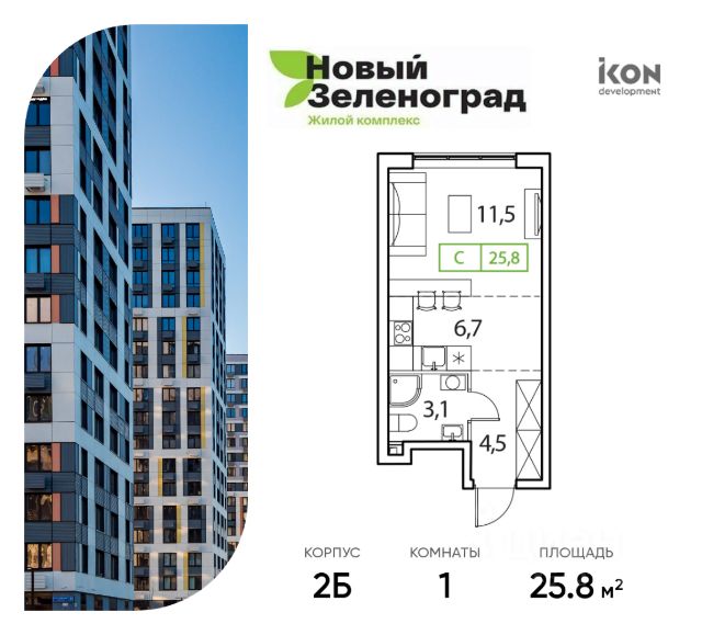 Продаю элегантную светлую студию 25,6 м², в квартире никто не жил, не прописан .