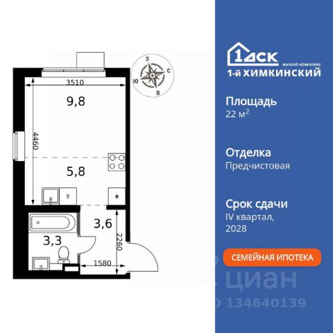 БЕЗ ПЕРВОНАЧАЛЬНОГО ВЗНОСА! Прямая продажа от застройщика! Жилой Комплекс класса Комфорт. Продаётся квартира-студия номер 178 общей площадью 23.5 кв.м. на 14-м этаже 17 этажного здания. Предчистовая отделка. Цена с учётом скидки. Особенности квартиры: - Организуем показ в удобное для вас время! - Линейная планировка - максимальная функциональность и удобство. - Увеличенное количество окон - дополнительное освещение и свежий воздух. - Линейная кухня - функциональность и практичность в одном решении. - Ниша под шкаф - компактное и удобное место для вещей. Квартира с предчистовой отделкой. Вам не придется заниматься черновыми и трудоёмкими работы, а чистовую отделку и дизайн - сделайте на свой вкус. Информация о комплексе: "1-й Химкинский": гармония современного города и природы на 102 га у Химкинского леса и канала им. Москвы. Развитая инфраструктура: ТЦ, школы, спорткомплекс с термами и СПА, парк развлечений. Идеальный баланс для жизни в окружении зелени и городского комфорта. Транспортная доступность: ЖК "1-й Химкинский" дает возможность выбрать любой способ передвижения как до города, так и до самых разных объектов, которые могут представлять интерес для его жителей. Не важно, какой способ передвижения вы предпочитаете, успевать всегда и везде можно вне зависимости от выбора транспорта. - 8 мин. пешком (800 м) до остановки "Золотая Арка" -10 мин пешком (1 км) до остановки "Поворот на Ивакино" Внутренняя инфраструктура: Безопасность: закрытые дворы без машин, безбарьерная среда, сквозные подъезды, камеры на детских площадках с трансляцией на смартфон. Отдых: семейный парк развлечений, двухэтажный ТЦ 8 000 м² с фудкортом. Образование: 4 детских сада, 2 муниципальные школы. Спорт: закольцованный веломаршрут, спорткомплекс с термами, тренажерный зал, воркаут зоны. Инфраструктура: поликлиника со станцией скорой помощи, пожарное депо. Паркинг: подземный паркинг, кладовые на -1 этаже, СТО и автомойка на территории. Квартира с предчистовой отделкой - ваш дизайн без черновых работ