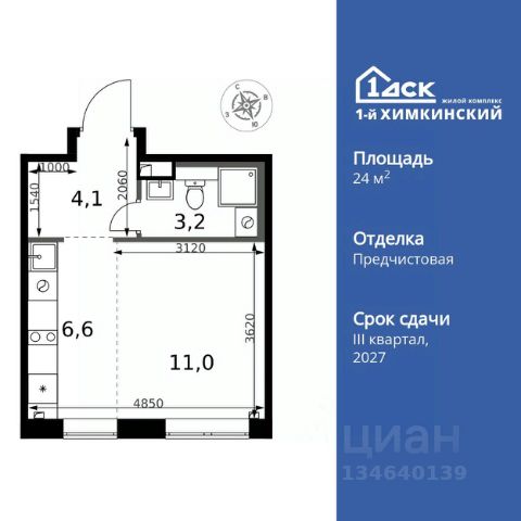 Прямая продажа от застройщика! Жилой Комплекс класса Комфорт. Продаётся квартира-студия номер 264 общей площадью 21.7 кв.м. на 2-м этаже 6 этажного здания. Отделка Whitebox. Цена с учётом скидки. Особенности квартиры: - Линейная планировка - максимальная функциональность и удобство. - Увеличенное количество окон - дополнительное освещение и свежий воздух. - Гардеробная - удобство для хранения и организации вещей. Квартира с предчистовой отделкой (White box). Вам не придется заниматься черновыми и трудоёмкими работы, а чистовую отделку и дизайн - сделайте на свой вкус. Информация о комплексе: Квартал класса комфорт плюс, где современное городское пространство граничит с удивительной природой вокруг. 1-й Химкинский расположен на территории в 102 га и органично вписан в природное окружение Химкинского леса и канала им. Москвы. В проекте предусмотрена богатая коммерческая инфраструктура с собственным торговым центром, общеобразовательные учреждения и социальные объекты. Изюминкой жилого комплекса будут спортивно-оздоровительный комплекс с термами и SPA и семейный парк развлечений. Транспортная доступность: ЖК "1-й Химкинский" дает возможность выбрать любой способ передвижения как до города, так и до самых разных объектов, которые могут представлять интерес для его жителей. Не важно, какой способ передвижения вы предпочитаете, успевать всегда и везде можно вне зависимости от выбора транспорта. - 8 мин. пешком (800 м) до остановки "Золотая Арка" -10 мин пешком (1 км) до остановки "Поворот на Ивакино" Внутренняя инфраструктура: - Безопасность: закрытые дворы без машин, безбарьерная среда и сквозные подъезды, камеры на детских площадках с возможностью трансляции на смартфоне - Идеальный отдых в кругу семьи: семейный парк развлечений на территории, торговый центр (2-х этажный) общей площадью более 8 тыс. кв. м с фудкортом - Образование: 3 детских сада и современная муниципальная школа на 2450 мест - Спортивная среда: закольцованный веломаршрут с навигацией, спортивный комплекс с термами, закрытый тренажерный зал и зоны ворк-аута - Социальные объекты: поликлиника со станцией скорой помощи, пожарное депо - Подземный паркинг и кладовые помещения на -1 этаже, станция техобслуживания и автомойка на территории