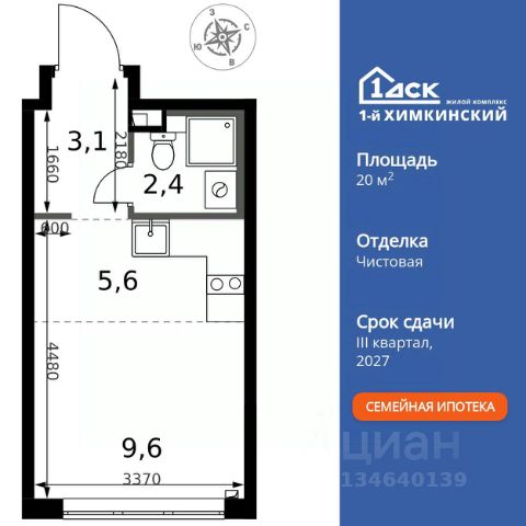 БЕЗ ПЕРВОНАЧАЛЬНОГО ВЗНОСА! Прямая продажа от застройщика! Жилой Комплекс класса Комфорт. Продаётся квартира-студия номер 264 общей площадью 21.7 кв.м. на 2-м этаже 6 этажного здания. Предчистовая отделка. Цена с учётом скидки. Особенности квартиры: - Организуем показ в удобное для вас время! - Линейная планировка - максимальная функциональность и удобство. - Увеличенное количество окон - дополнительное освещение и свежий воздух. - Гардеробная - удобство для хранения и организации вещей. Квартира с предчистовой отделкой. Вам не придется заниматься черновыми и трудоёмкими работы, а чистовую отделку и дизайн - сделайте на свой вкус. Информация о комплексе: "1-й Химкинский": гармония современного города и природы на 102 га у Химкинского леса и канала им. Москвы. Развитая инфраструктура: ТЦ, школы, спорткомплекс с термами и СПА, парк развлечений. Идеальный баланс для жизни в окружении зелени и городского комфорта. Транспортная доступность: ЖК "1-й Химкинский" дает возможность выбрать любой способ передвижения как до города, так и до самых разных объектов, которые могут представлять интерес для его жителей. Не важно, какой способ передвижения вы предпочитаете, успевать всегда и везде можно вне зависимости от выбора транспорта. - 8 мин. пешком (800 м) до остановки "Золотая Арка" -10 мин пешком (1 км) до остановки "Поворот на Ивакино" Внутренняя инфраструктура: Безопасность: закрытые дворы без машин, безбарьерная среда, сквозные подъезды, камеры на детских площадках с трансляцией на смартфон. Отдых: семейный парк развлечений, двухэтажный ТЦ 8 000 м² с фудкортом. Образование: 4 детских сада, 2 муниципальные школы. Спорт: закольцованный веломаршрут, спорткомплекс с термами, тренажерный зал, воркаут зоны. Инфраструктура: поликлиника со станцией скорой помощи, пожарное депо. Паркинг: подземный паркинг, кладовые на -1 этаже, СТО и автомойка на территории. Квартира с предчистовой отделкой - ваш дизайн без черновых работ
