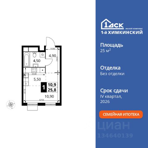 БЕЗ ПЕРВОНАЧАЛЬНОГО ВЗНОСА! • ИПОТЕКА 10% ДЛЯ ВСЕХ БЕЗ НАЦЕНОК • ДОСТУПНО ПО СЕМЕЙНОЙ ИПОТЕКЕ Прямая продажа от застройщика! Жилой Комплекс класса Комфорт. Продаётся квартира-студия номер 264 общей площадью 21.7 кв.м. на 2-м этаже 6 этажного здания. Отделка Whitebox. Цена с учётом скидки. Особенности квартиры: - Линейная планировка - максимальная функциональность и удобство. - Увеличенное количество окон - дополнительное освещение и свежий воздух. - Гардеробная - удобство для хранения и организации вещей. Квартира с предчистовой отделкой (White box). Вам не придется заниматься черновыми и трудоёмкими работы, а чистовую отделку и дизайн - сделайте на свой вкус. Информация о комплексе: Квартал класса комфорт плюс, где современное городское пространство граничит с удивительной природой вокруг. 1-й Химкинский расположен на территории в 102 га и органично вписан в природное окружение Химкинского леса и канала им. Москвы. В проекте предусмотрена богатая коммерческая инфраструктура с собственным торговым центром, общеобразовательные учреждения и социальные объекты. Изюминкой жилого комплекса будут спортивно-оздоровительный комплекс с термами и SPA и семейный парк развлечений. Транспортная доступность: ЖК "1-й Химкинский" дает возможность выбрать любой способ передвижения как до города, так и до самых разных объектов, которые могут представлять интерес для его жителей. Не важно, какой способ передвижения вы предпочитаете, успевать всегда и везде можно вне зависимости от выбора транспорта. - 8 мин. пешком (800 м) до остановки "Золотая Арка" -10 мин пешком (1 км) до остановки "Поворот на Ивакино" Внутренняя инфраструктура: - Безопасность: закрытые дворы без машин, безбарьерная среда и сквозные подъезды, камеры на детских площадках с возможностью трансляции на смартфоне - Идеальный отдых в кругу семьи: семейный парк развлечений на территории, торговый центр (2-х этажный) общей площадью более 8 тыс. кв. м с фудкортом - Образование: 3 детских сада и современная муниципальная школа на 2450 мест - Спортивная среда: закольцованный веломаршрут с навигацией, спортивный комплекс с термами, закрытый тренажерный зал и зоны ворк-аута - Социальные объекты: поликлиника со станцией скорой помощи, пожарное депо - Подземный паркинг и кладовые помещения на -1 этаже, станция техобслуживания и автомойка на территории