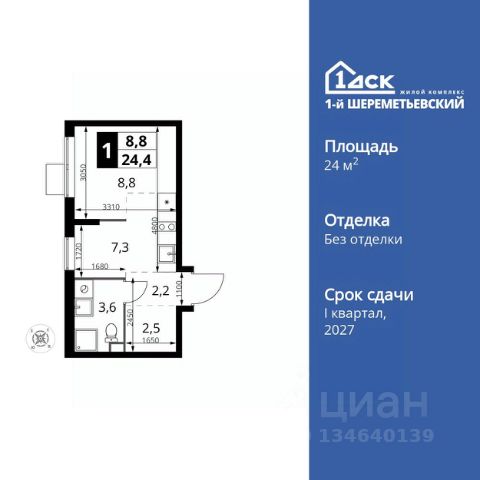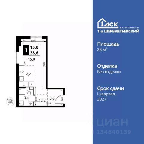 Прямая продажа от застройщика! Жилой Комплекс класса Комфорт Плюс. Продаётся квартира-студия номер 1178 общей площадью 23.6 кв.м. на 2-м этаже 17 этажного здания. Без отделки. Особенности квартиры: - Линейная планировка - максимальная функциональность и удобство. - Гибкая планировка - создайте пространство по своему вкусу. - Место для игры/занятия спортом - идеальное пространство для активных детей. - Можно оборудовать рабочее место - комфорт для работы и учёбы. - Линейная кухня - функциональность и практичность в одном решении. - Ниша под шкаф - компактное и удобное место для вещей. Информация о комплексе: ЖК 1-й Шереметьевский расположен в самом центре Подрезково, от него всего 6 минут пешком до одноименной станции ж/д и планируемой к открытию МЦД-3. В комплексе яркие и уютные, лобби, большая колясочная, лапомойка. Благодаря гостевому санузлу на 1 этаже прогулки станут по-настоящему долгими. Два лифта пассажирский и грузовой.Во всех корпусах 1-го Шереметьевского там устроены кладовые, а в корпусах 3-5 есть подземный паркинг. В ЖК 1-й Шереметьевский разнообразие площадей и планировок. Большие кухни-гостиные: в них два окна или больше. Во всех квартирах площадью от 40 кв.м. и выше спроектировано 2 санузла. Большие остекленные лоджии с отделкой. Система Умная квартира, реализованная в 1-м Шереметьевском. В каждой квартире установлены датчики протечек и запорные вентили с электроприводом, которые самостоятельно перекрывают воду в случае аварии. Мобильное приложение управляет группами электропотребителей: даже если вы забыли утюг включенным, можно обесточить его дистанционно. Транспортная доступность: - Общественный транспорт: До ближайших станций метро Планерной и Войковской около 40-50 минут на автобусе. 6 минут до ЖД станции Подрезково (МЦД-3) - Личный автотранспорт: Удобный выезд на Ленинградское шоссе позволяет быстро добираться до МКАДа и в центр Москвы, до платной трассы М11 и в аэропорт Шереметьево. 3 минуты до Ленинградского ш. 10 минут до платной трассы М11 15 минут до МКАД 20 минут до ст. м Войковская 25 минут до ст. м Планерная Внутренняя инфраструктура: 1-й Шереметьевский не только сокращает время, которое вы будете проводить в дороге. Но и предпринимает многое, чтобы вы меньше ездили и чаще ходили. На первых этажах корпусов разместятся фрешмаркеты и пункты выдачи маркетплейсов, салоны красоты и химчистки, кофейни и пекарни всё, что необходимо изо дня в день, но не заслуживает отдельной поездки на машине или такси. В квартале будут построены собственные школа и детский сад. Школа рассчитана на 1100 учеников. В ней будут 25-метровый бассейн и просторный атриум, медиатека. Детский сад рассчитана на 400 малышей. Здесь стильный дизайн и комфортные группы, большой физкультурный зал и просторный зал для занятия музыкой. Дворы без машин. Безопасные детские площадки. Вдоль корпусов организованы зоны тихого отдыха: детский гомон с далеких каруселей и горок не достигнет окон жителей