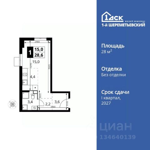 Прямая продажа от застройщика! Жилой Комплекс класса Комфорт. Продаётся квартира-студия номер 469 общей площадью 28.8 кв.м. на 6-м этаже 14 этажного здания. Отделка Whitebox. Особенности квартиры: - Линейная планировка - максимальная функциональность и удобство. - Увеличенное количество окон - дополнительное освещение и свежий воздух. - Линейная кухня - функциональность и практичность в одном решении. - Ниша под шкаф - компактное и удобное место для вещей. Квартира с предчистовой отделкой (White box). Вам не придется заниматься черновыми и трудоёмкими работы, а чистовую отделку и дизайн - сделайте на свой вкус. Информация о комплексе: Квартал класса комфорт плюс, где современное городское пространство граничит с удивительной природой вокруг. 1-й Химкинский расположен на территории в 102 га и органично вписан в природное окружение Химкинского леса и канала им. Москвы. В проекте предусмотрена богатая коммерческая инфраструктура с собственным торговым центром, общеобразовательные учреждения и социальные объекты. Изюминкой жилого комплекса будут спортивно-оздоровительный комплекс с термами и SPA и семейный парк развлечений. Транспортная доступность: ЖК "1-й Химкинский" дает возможность выбрать любой способ передвижения как до города, так и до самых разных объектов, которые могут представлять интерес для его жителей. Не важно, какой способ передвижения вы предпочитаете, успевать всегда и везде можно вне зависимости от выбора транспорта. - 8 мин. пешком (800 м) до остановки "Золотая Арка" -10 мин пешком (1 км) до остановки "Поворот на Ивакино" Внутренняя инфраструктура: - Безопасность: закрытые дворы без машин, безбарьерная среда и сквозные подъезды, камеры на детских площадках с возможностью трансляции на смартфоне - Идеальный отдых в кругу семьи: семейный парк развлечений на территории, торговый центр (2-х этажный) общей площадью более 8 тыс. кв. м с фудкортом - Образование: 3 детских сада и современная муниципальная школа на 2450 мест - Спортивная среда: закольцованный веломаршрут с навигацией, спортивный комплекс с термами, закрытый тренажерный зал и зоны ворк-аута - Социальные объекты: поликлиника со станцией скорой помощи, пожарное депо - Подземный паркинг и кладовые помещения на -1 этаже, станция техобслуживания и автомойка на территории