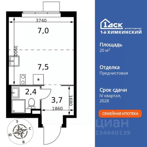 БЕЗ ПЕРВОНАЧАЛЬНОГО ВЗНОСА! Прямая продажа от застройщика! Жилой Комплекс класса Комфорт. Продаётся квартира-студия номер 215 общей площадью 23.2 кв.м. на 6-м этаже 16 этажного здания. Без отделки. Особенности квартиры: - Организуем показ в удобное для вас время! - Линейная планировка - максимальная функциональность и удобство. - Ниша под шкаф - компактное и удобное место для вещей. Квартира без отделки. Чистый холст для воплощения интерьера вашей мечты. Информация о комплексе: "1-й Химкинский": гармония современного города и природы на 102 га у Химкинского леса и канала им. Москвы. Развитая инфраструктура: ТЦ, школы, спорткомплекс с термами и СПА, парк развлечений. Идеальный баланс для жизни в окружении зелени и городского комфорта. Транспортная доступность: ЖК "1-й Химкинский" дает возможность выбрать любой способ передвижения как до города, так и до самых разных объектов, которые могут представлять интерес для его жителей. Не важно, какой способ передвижения вы предпочитаете, успевать всегда и везде можно вне зависимости от выбора транспорта. - 8 мин. пешком (800 м) до остановки "Золотая Арка" -10 мин пешком (1 км) до остановки "Поворот на Ивакино" Внутренняя инфраструктура: Безопасность: закрытые дворы без машин, безбарьерная среда, сквозные подъезды, камеры на детских площадках с трансляцией на смартфон. Отдых: семейный парк развлечений, двухэтажный ТЦ 8 000 м² с фудкортом. Образование: 4 детских сада, 2 муниципальные школы. Спорт: закольцованный веломаршрут, спорткомплекс с термами, тренажерный зал, воркаут зоны. Инфраструктура: поликлиника со станцией скорой помощи, пожарное депо. Паркинг: подземный паркинг, кладовые на -1 этаже, СТО и автомойка на территории. Квартира без отделки - чистый холст для вашего интерьера.
