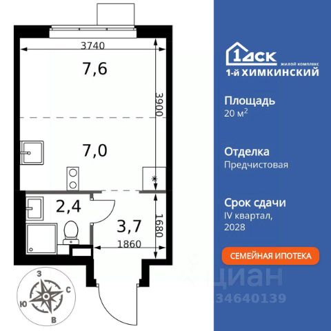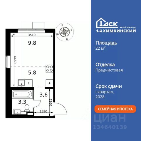 БЕЗ ПЕРВОНАЧАЛЬНОГО ВЗНОСА! Прямая продажа от застройщика! Жилой Комплекс класса Комфорт. Продаётся квартира-студия номер 18 общей площадью 25 кв.м. на 6-м этаже 15 этажного здания. Предчистовая отделка. Цена с учётом скидки. Особенности квартиры: - Организуем показ в удобное для вас время! - Линейная планировка - максимальная функциональность и удобство. - Увеличенное количество окон - дополнительное освещение и свежий воздух. - Линейная кухня - функциональность и практичность в одном решении. - Ниша под шкаф - компактное и удобное место для вещей. Квартира с предчистовой отделкой. Вам не придется заниматься черновыми и трудоёмкими работы, а чистовую отделку и дизайн - сделайте на свой вкус. Информация о комплексе: "1-й Химкинский": гармония современного города и природы на 102 га у Химкинского леса и канала им. Москвы. Развитая инфраструктура: ТЦ, школы, спорткомплекс с термами и СПА, парк развлечений. Идеальный баланс для жизни в окружении зелени и городского комфорта. Транспортная доступность: ЖК "1-й Химкинский" дает возможность выбрать любой способ передвижения как до города, так и до самых разных объектов, которые могут представлять интерес для его жителей. Не важно, какой способ передвижения вы предпочитаете, успевать всегда и везде можно вне зависимости от выбора транспорта. - 8 мин. пешком (800 м) до остановки "Золотая Арка" -10 мин пешком (1 км) до остановки "Поворот на Ивакино" Внутренняя инфраструктура: Безопасность: закрытые дворы без машин, безбарьерная среда, сквозные подъезды, камеры на детских площадках с трансляцией на смартфон. Отдых: семейный парк развлечений, двухэтажный ТЦ 8 000 м² с фудкортом. Образование: 4 детских сада, 2 муниципальные школы. Спорт: закольцованный веломаршрут, спорткомплекс с термами, тренажерный зал, воркаут зоны. Инфраструктура: поликлиника со станцией скорой помощи, пожарное депо. Паркинг: подземный паркинг, кладовые на -1 этаже, СТО и автомойка на территории. Квартира с предчистовой отделкой - ваш дизайн без черновых работ