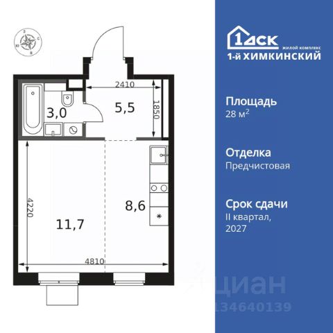 Прямая продажа от застройщика! Жилой Комплекс класса Комфорт. Продаётся квартира-студия номер 572 общей площадью 21.3 кв.м. на 7-м этаже 17 этажного здания. Отделка Whitebox. Особенности квартиры: - Линейная планировка - максимальная функциональность и удобство. - Увеличенное количество окон - дополнительное освещение и свежий воздух. - Ниша под шкаф - компактное и удобное место для вещей. Квартира с предчистовой отделкой (White box). Вам не придется заниматься черновыми и трудоёмкими работы, а чистовую отделку и дизайн - сделайте на свой вкус. Информация о комплексе: Квартал класса комфорт плюс, где современное городское пространство граничит с удивительной природой вокруг. 1-й Химкинский расположен на территории в 102 га и органично вписан в природное окружение Химкинского леса и канала им. Москвы. В проекте предусмотрена богатая коммерческая инфраструктура с собственным торговым центром, общеобразовательные учреждения и социальные объекты. Изюминкой жилого комплекса будут спортивно-оздоровительный комплекс с термами и SPA и семейный парк развлечений. Транспортная доступность: ЖК "1-й Химкинский" дает возможность выбрать любой способ передвижения как до города, так и до самых разных объектов, которые могут представлять интерес для его жителей. Не важно, какой способ передвижения вы предпочитаете, успевать всегда и везде можно вне зависимости от выбора транспорта. - 8 мин. пешком (800 м) до остановки "Золотая Арка" -10 мин пешком (1 км) до остановки "Поворот на Ивакино" Внутренняя инфраструктура: - Безопасность: закрытые дворы без машин, безбарьерная среда и сквозные подъезды, камеры на детских площадках с возможностью трансляции на смартфоне - Идеальный отдых в кругу семьи: семейный парк развлечений на территории, торговый центр (2-х этажный) общей площадью более 8 тыс. кв. м с фудкортом - Образование: 3 детских сада и современная муниципальная школа на 2450 мест - Спортивная среда: закольцованный веломаршрут с навигацией, спортивный комплекс с термами, закрытый тренажерный зал и зоны ворк-аута - Социальные объекты: поликлиника со станцией скорой помощи, пожарное депо - Подземный паркинг и кладовые помещения на -1 этаже, станция техобслуживания и автомойка на территории