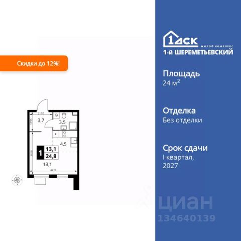 Продается квартира-студия в жилом комплексе комфорт класса "Химки Тайм" площадью 23.44 кв.м на 8 этаже 20 этажного дома. Квартира с полной отделкой, окна выходят во двор. Прекрасный выбор для первой квартиры или инвестиций. Комфортные квартиры по комфортной цене! • Скидки на квартиры до 17% (стоимость квартиры в карточке указана с учетом скидки). • Семейная ипотека без дополнительных комиссий • IT ипотека без дополнительных комиссий • Квартиры "под ключ", сдаются с чистовой отделкой, в светлых и темных тонах на ваш выбор. • Точечная застройка с готовым ремонтом: выбирайте дом, где слышно птиц, а не стройку. Живите ДОМА, а не на стройплощадке. • Бесплатный наземный паркинг грамотное планирование потоков машин и пешеходов позволяют сделать дом удобным для всех. Не нужно переплачивать за подземный гараж. • Прекрасный выбор для первой квартиры или инвестиций. В 20252027 недалеко будет запущен Индустриальный парк "Молжаниново" технологичный объект, который станет еще одним катализатором развития района, предоставит рабочие места высококвалифицированным специалистам и подстегнёт спрос на покупку и аренду квартир. Успейте вложиться по выгодной цене. До центра Москвы на учебу, работу и по любому поводу — это быстро! • 5 мин пешком до скоростной линии МЦД-3 "Молжаниново". • От 30 мин на автобусе или маршрутке до ст.м. "Сходненская", "Речной вокзал". Остановка общественного транспорта "Филино" около ЖК. • На автомобиле удобный выезд на Ленинградское шоссе: до центра Москвы — 40 минут, до международного аэропорта Шереметьево — 20 минут. В состав чистовой отделки входит всё, что нужно для комфорта. Вкладывайте в себя и в детей, а не в ремонт! • Выравнивание полов, стен и потолков • Покрытие полов ламинатом • Поклейка обоев • Монтаж натяжных потолков с установкой светильников • Установка межкомнатных дверей • Установка радиаторов отопления • Выкладывание плиточного "фартука" на кухне • Установка водопроводных и канализационных труб в "мокрой зоне" на кухне • Укладывание плитки в ванной комнате • Установка сантехники • Установка счетчиков • Разводка электросети • Монтаж розеток, выключателей Архитектура на многие десятилетия! • Дома строятся по монолитной технологии с вентилируемыми фасадами. В квартирах будет комфортный микроклимат в любой сезон, а корпуса сохранят достойный внешний вид в течение долгого времени. • В каждом корпусе один подъезд и 3 лифта это не человейник. • В каждом подъезде есть отдельная комната для хранения спортивного оборудования. Инфраструктура на территории качественный дом с понятной "начинкой". • На первых этажах расположатся магазины, салоны красоты и кафе • Внутри ЖК будет муниципальный детский сад • 2 спортивные площадки • 2 площадки для отдыха взрослого населения • 4 детские игровые площадки Собственный паркинг ваша машина около вашего дома. • В ЖК своя бесплатная наземная автостоянка на 210 машиномест Окружение выбирайте ЖК, где всё готово д