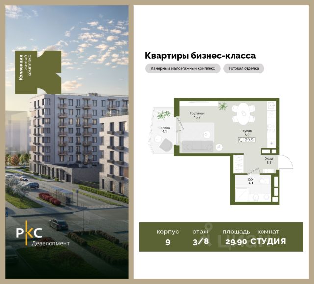 • ✓ В базе Циан 1 квартир-студий на 8 этаже в деревне Рузино Московской области