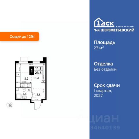 Прямая продажа от застройщика! Жилой Комплекс класса Комфорт Плюс. Продаётся квартира-студия номер 819 общей площадью 22.1 кв.м. на 9-м этаже 16 этажного здания. Отделка Whitebox. Особенности квартиры: - Линейная планировка - максимальная функциональность и удобство. - Можно оборудовать рабочее место - комфорт для работы и учёбы. - Ниша под шкаф - компактное и удобное место для вещей. Квартира с предчистовой отделкой (White box). Вам не придется заниматься черновыми и трудоёмкими работы, а чистовую отделку и дизайн - сделайте на свой вкус. Информация о комплексе: ЖК 1-й Шереметьевский расположен в самом центре Подрезково, от него всего 6 минут пешком до одноименной станции ж/д и планируемой к открытию МЦД-3. В комплексе яркие и уютные, лобби, большая колясочная, лапомойка. Благодаря гостевому санузлу на 1 этаже прогулки станут по-настоящему долгими. Два лифта пассажирский и грузовой.Во всех корпусах 1-го Шереметьевского там устроены кладовые, а в корпусах 3-5 есть подземный паркинг. В ЖК 1-й Шереметьевский разнообразие площадей и планировок. Большие кухни-гостиные: в них два окна или больше. Во всех квартирах площадью от 40 кв.м. и выше спроектировано 2 санузла. Большие остекленные лоджии с отделкой. Система Умная квартира, реализованная в 1-м Шереметьевском. В каждой квартире установлены датчики протечек и запорные вентили с электроприводом, которые самостоятельно перекрывают воду в случае аварии. Мобильное приложение управляет группами электропотребителей: даже если вы забыли утюг включенным, можно обесточить его дистанционно. Транспортная доступность: - Общественный транспорт: До ближайших станций метро Планерной и Войковской около 40-50 минут на автобусе. 6 минут до ЖД станции Подрезково (МЦД-3) - Личный автотранспорт: Удобный выезд на Ленинградское шоссе позволяет быстро добираться до МКАДа и в центр Москвы, до платной трассы М11 и в аэропорт Шереметьево. 3 минуты до Ленинградского ш. 10 минут до платной трассы М11 15 минут до МКАД 20 минут до ст. м Войковская 25 минут до ст. м Планерная Внутренняя инфраструктура: 1-й Шереметьевский не только сокращает время, которое вы будете проводить в дороге. Но и предпринимает многое, чтобы вы меньше ездили и чаще ходили. На первых этажах корпусов разместятся фрешмаркеты и пункты выдачи маркетплейсов, салоны красоты и химчистки, кофейни и пекарни всё, что необходимо изо дня в день, но не заслуживает отдельной поездки на машине или такси. В квартале будут построены собственные школа и детский сад. Школа рассчитана на 1100 учеников. В ней будут 25-метровый бассейн и просторный атриум, медиатека. Детский сад рассчитана на 400 малышей. Здесь стильный дизайн и комфортные группы, большой физкультурный зал и просторный зал для занятия музыкой. Дворы без машин. Безопасные детские площадки. Вдоль корпусов организованы зоны тихого отдыха: детский гомон с далеких каруселей и горок не достигнет окон жителей. В квартале спроектирован закольцованный вел