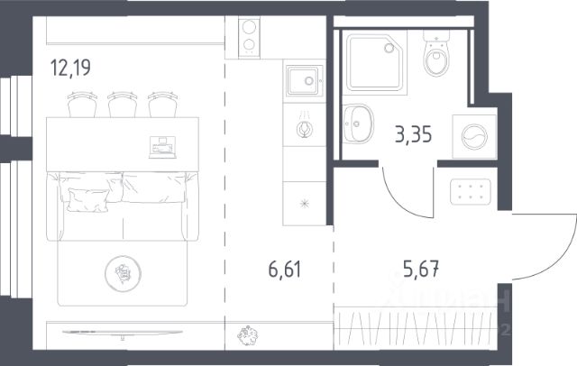 Планировка евро. Кухня-гостиная, совмещённый санузел, широкая прихожая - эргономично, современно!