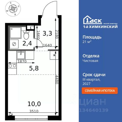Квартира в ЖК "Новый Зеленоград" | Студия | 25.8 м² | 14 этаж из 18 | Срок сдачи — IV кв. 2025 года Откройте для себя комфорт и экологию в современном жилом комплексе "Новый Зеленоград" в окружении лесов и водоемов всего в 500 метрах от Зеленограда. Экологичная локация: Живите в гармонии с природой, не отказываясь от удобств города! Заповедные леса и водоемы — идеальное место для прогулок и активного отдыха 5 минут до Зеленограда — развитая городская инфраструктура 25 минут до МКАД — удобный выезд Современный комфорт: Архитектура с яркими фасадами и большими окнами Кладовые и просторные входные группы Высокие потолки (2,6 м), продуманные планировки с просторными комнатами и гардеробными Квартиры без отделки или с готовым ремонтом Развитая инфраструктура: Уже открыты детский сад и начальная школа с современными образовательными программами Магазины, кафе, аптеки, пункты выдачи и сервисы на первых этажах Игровые площадки для детей разных возрастов Спортивные площадки и футбольное поле, скейтпарк и зона воркаут для активного образа жизни Безопасность и удобство: Благоустроенные дворы без машин, видеонаблюдение Автомобильная парковка на территории Собственная управляющая компания Финансовые условия и программы покупки: Все виды ипотеки, включая гос. поддержку с высоким процентом одобрения Рассрочка до 3 лет — покупка квартиры стала еще доступнее ЖК "Новый Зеленоград" — идеальный выбор для тех, кто ценит экологию, комфорт, развитую инфраструктуру и выгодные условия покупки. Узнайте подробности и забронируйте квартиру у наших менеджеров! Купить квартиру-студию в городском округе Химках Московской области.