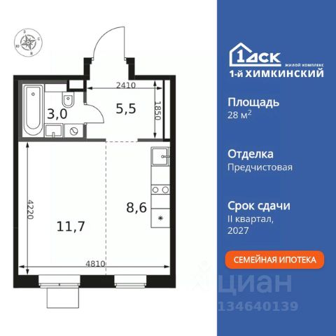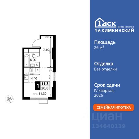 БЕЗ ПЕРВОНАЧАЛЬНОГО ВЗНОСА! Прямая продажа от застройщика! Жилой Комплекс класса Комфорт. Продаётся квартира-студия номер 192 общей площадью 23.5 кв.м. на 15-м этаже 17 этажного здания. Предчистовая отделка. Цена с учётом скидки. Особенности квартиры: - Организуем показ в удобное для вас время! - Линейная планировка - максимальная функциональность и удобство. - Увеличенное количество окон - дополнительное освещение и свежий воздух. - Линейная кухня - функциональность и практичность в одном решении. - Ниша под шкаф - компактное и удобное место для вещей. Квартира с предчистовой отделкой. Вам не придется заниматься черновыми и трудоёмкими работы, а чистовую отделку и дизайн - сделайте на свой вкус. Информация о комплексе: "1-й Химкинский": гармония современного города и природы на 102 га у Химкинского леса и канала им. Москвы. Развитая инфраструктура: ТЦ, школы, спорткомплекс с термами и СПА, парк развлечений. Идеальный баланс для жизни в окружении зелени и городского комфорта. Транспортная доступность: ЖК "1-й Химкинский" дает возможность выбрать любой способ передвижения как до города, так и до самых разных объектов, которые могут представлять интерес для его жителей. Не важно, какой способ передвижения вы предпочитаете, успевать всегда и везде можно вне зависимости от выбора транспорта. - 8 мин. пешком (800 м) до остановки "Золотая Арка" -10 мин пешком (1 км) до остановки "Поворот на Ивакино" Внутренняя инфраструктура: Безопасность: закрытые дворы без машин, безбарьерная среда, сквозные подъезды, камеры на детских площадках с трансляцией на смартфон. Отдых: семейный парк развлечений, двухэтажный ТЦ 8 000 м² с фудкортом. Образование: 4 детских сада, 2 муниципальные школы. Спорт: закольцованный веломаршрут, спорткомплекс с термами, тренажерный зал, воркаут зоны. Инфраструктура: поликлиника со станцией скорой помощи, пожарное депо. Паркинг: подземный паркинг, кладовые на -1 этаже, СТО и автомойка на территории. Квартира с предчистовой отделкой - ваш дизайн без черновых работ Продается квартира-студия в микрорайоне Клязьма-Старбеево в городе Химки.