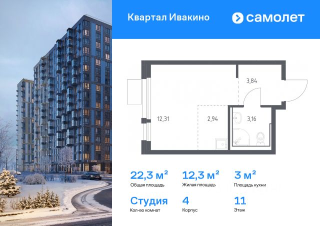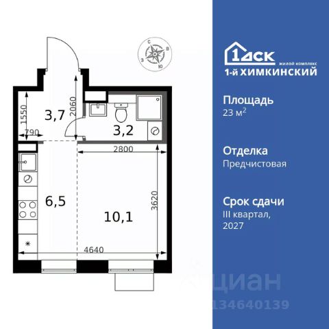 УСПЕЙ ПО СЕМЕЙНОЙ ИПОТЕКЕ БЕЗ НАЦЕНКИ! От 25 000 рублей в месяц! Прямая продажа от застройщика! Жилой Комплекс класса Комфорт. Продаётся квартира-студия номер 219 общей площадью 23.5 кв.м. на 17-м этаже 17 этажного здания. Отделка Whitebox. Цена с учётом скидки. Особенности квартиры: - Линейная планировка - максимальная функциональность и удобство. - Увеличенное количество окон - дополнительное освещение и свежий воздух. - Увеличенная высота потолков - ощущение простора и легкости. - Линейная кухня - функциональность и практичность в одном решении. - Ниша под шкаф - компактное и удобное место для вещей. Квартира с предчистовой отделкой (White box). Вам не придется заниматься черновыми и трудоёмкими работы, а чистовую отделку и дизайн - сделайте на свой вкус. Информация о комплексе: Квартал класса комфорт плюс, где современное городское пространство граничит с удивительной природой вокруг. 1-й Химкинский расположен на территории в 102 га и органично вписан в природное окружение Химкинского леса и канала им. Москвы. В проекте предусмотрена богатая коммерческая инфраструктура с собственным торговым центром, общеобразовательные учреждения и социальные объекты. Изюминкой жилого комплекса будут спортивно-оздоровительный комплекс с термами и SPA и семейный парк развлечений. Транспортная доступность: ЖК "1-й Химкинский" дает возможность выбрать любой способ передвижения как до города, так и до самых разных объектов, которые могут представлять интерес для его жителей. Не важно, какой способ передвижения вы предпочитаете, успевать всегда и везде можно вне зависимости от выбора транспорта. - 8 мин. пешком (800 м) до остановки "Золотая Арка" -10 мин пешком (1 км) до остановки "Поворот на Ивакино" Внутренняя инфраструктура: - Безопасность: закрытые дворы без машин, безбарьерная среда и сквозные подъезды, камеры на детских площадках с возможностью трансляции на смартфоне - Идеальный отдых в кругу семьи: семейный парк развлечений на территории, торговый центр (2-х этажный) общей площадью более 8 тыс. кв. м с фудкортом - Образование: 3 детских сада и современная муниципальная школа на 2450 мест - Спортивная среда: закольцованный веломаршрут с навигацией, спортивный комплекс с термами, закрытый тренажерный зал и зоны ворк-аута - Социальные объекты: поликлиника со станцией скорой помощи, пожарное депо - Подземный паркинг и кладовые помещения на -1 этаже, станция техобслуживания и автомойка на территории