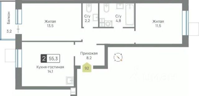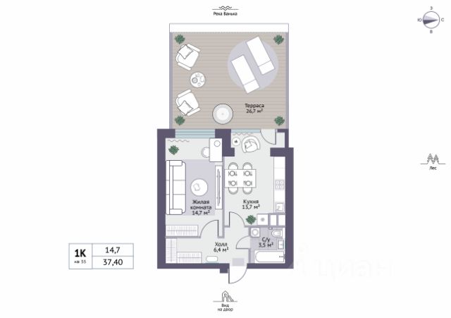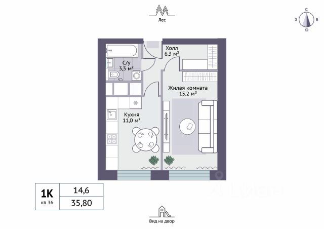 Входная группа: подъезд сквозной с выходом во двор и на улицу, в подъезде обустроено отдельное пространство для колясок и велосипедов, круглосуточное видеонаблюдение.