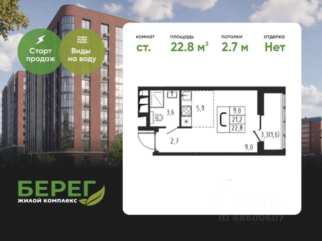 БЕЗ ПЕРВОНАЧАЛЬНОГО ВЗНОСА! Прямая продажа от застройщика! Жилой Комплекс класса Комфорт. Продаётся квартира-студия номер 488 общей площадью 22.6 кв.м. на 17-м этаже 17 этажного здания. Чистовая отделка. Цена с учётом скидки. Особенности квартиры: - Организуем показ в удобное для вас время! - Линейная планировка - максимальная функциональность и удобство. - Увеличенная высота потолков - ощущение простора и легкости. Квартира с чистовой отделкой. Раскройте свою индивидуальность в создании своего уникального проекта, а трудоемкий ремонт мы возьмем на себя! Вы идете в ногу со временем и предпочитаете современные, универсальные дизайнерские решения? Или вы любитель строгой лаконичной классики? Тогда наши интерьеры придутся вам по душе! Выбирайте то, что ближе лично Вам и реализуйте свои задумки вместе с нами! Информация о комплексе: "1-й Химкинский": гармония современного города и природы на 102 га у Химкинского леса и канала им. Москвы. Развитая инфраструктура: ТЦ, школы, спорткомплекс с термами и СПА, парк развлечений. Идеальный баланс для жизни в окружении зелени и городского комфорта. Транспортная доступность: ЖК "1-й Химкинский" дает возможность выбрать любой способ передвижения как до города, так и до самых разных объектов, которые могут представлять интерес для его жителей. Не важно, какой способ передвижения вы предпочитаете, успевать всегда и везде можно вне зависимости от выбора транспорта. - 8 мин. пешком (800 м) до остановки "Золотая Арка" -10 мин пешком (1 км) до остановки "Поворот на Ивакино" Внутренняя инфраструктура: Безопасность: закрытые дворы без машин, безбарьерная среда, сквозные подъезды, камеры на детских площадках с трансляцией на смартфон. Отдых: семейный парк развлечений, двухэтажный ТЦ 8 000 м² с фудкортом. Образование: 4 детских сада, 2 муниципальные школы. Спорт: закольцованный веломаршрут, спорткомплекс с термами, тренажерный зал, воркаут зоны. Инфраструктура: поликлиника со станцией скорой помощи, пожарное депо. Паркинг: подземный паркинг, кладовые на -1 этаже, СТО и автомойка на территории. Квартира с чистовой отделкой: ваш стиль без ремонта. Выбирайте современный дизайн или классику - мы воплотим ваши идеи. Готовые интерьеры для уникального дома.