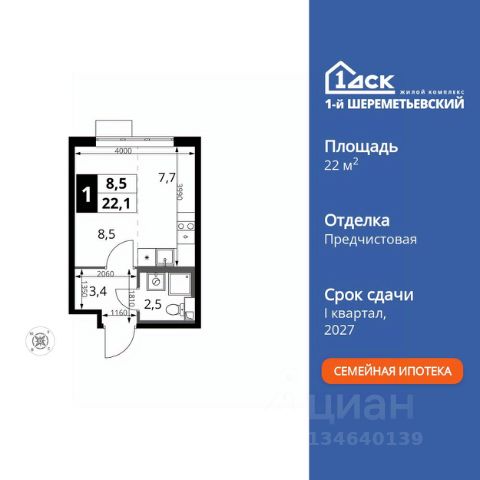 БЕЗ ПЕРВОНАЧАЛЬНОГО ВЗНОСА! Прямая продажа от застройщика! Жилой Комплекс класса Комфорт. Продаётся квартира-студия номер 488 общей площадью 22.6 кв.м. на 17-м этаже 17 этажного здания. Чистовая отделка. Цена с учётом скидки. Особенности квартиры: - Организуем показ в удобное для вас время! - Линейная планировка - максимальная функциональность и удобство. - Увеличенная высота потолков - ощущение простора и легкости. Квартира с чистовой отделкой. Раскройте свою индивидуальность в создании своего уникального проекта, а трудоемкий ремонт мы возьмем на себя! Вы идете в ногу со временем и предпочитаете современные, универсальные дизайнерские решения? Или вы любитель строгой лаконичной классики? Тогда наши интерьеры придутся вам по душе! Выбирайте то, что ближе лично Вам и реализуйте свои задумки вместе с нами! Информация о комплексе: "1-й Химкинский": гармония современного города и природы на 102 га у Химкинского леса и канала им. Москвы. Развитая инфраструктура: ТЦ, школы, спорткомплекс с термами и СПА, парк развлечений. Идеальный баланс для жизни в окружении зелени и городского комфорта. Транспортная доступность: ЖК "1-й Химкинский" дает возможность выбрать любой способ передвижения как до города, так и до самых разных объектов, которые могут представлять интерес для его жителей. Не важно, какой способ передвижения вы предпочитаете, успевать всегда и везде можно вне зависимости от выбора транспорта. - 8 мин. пешком (800 м) до остановки "Золотая Арка" -10 мин пешком (1 км) до остановки "Поворот на Ивакино" Внутренняя инфраструктура: Безопасность: закрытые дворы без машин, безбарьерная среда, сквозные подъезды, камеры на детских площадках с трансляцией на смартфон. Отдых: семейный парк развлечений, двухэтажный ТЦ 8 000 м² с фудкортом. Образование: 4 детских сада, 2 муниципальные школы. Спорт: закольцованный веломаршрут, спорткомплекс с термами, тренажерный зал, воркаут зоны. Инфраструктура: поликлиника со станцией скорой помощи, пожарное депо. Паркинг: подземный паркинг, кладовые на -1 этаже, СТО и автомойка на территории. Квартира с чистовой отделкой: ваш стиль без ремонта. Выбирайте современный дизайн или классику - мы воплотим ваши идеи. Готовые интерьеры для уникального дома.