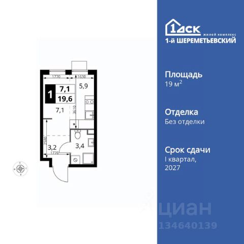 Прямая продажа от застройщика! Жилой Комплекс класса Комфорт. Продаётся квартира-студия номер 270 общей площадью 19.5 кв.м. на 3-м этаже 6 этажного здания. Отделка Whitebox. Цена с учётом скидки. Особенности квартиры: - Линейная планировка - максимальная функциональность и удобство. - Ниша под шкаф - компактное и удобное место для вещей. Квартира с предчистовой отделкой (White box). Вам не придется заниматься черновыми и трудоёмкими работы, а чистовую отделку и дизайн - сделайте на свой вкус. Информация о комплексе: Квартал класса комфорт плюс, где современное городское пространство граничит с удивительной природой вокруг. 1-й Химкинский расположен на территории в 102 га и органично вписан в природное окружение Химкинского леса и канала им. Москвы. В проекте предусмотрена богатая коммерческая инфраструктура с собственным торговым центром, общеобразовательные учреждения и социальные объекты. Изюминкой жилого комплекса будут спортивно-оздоровительный комплекс с термами и SPA и семейный парк развлечений. Транспортная доступность: ЖК "1-й Химкинский" дает возможность выбрать любой способ передвижения как до города, так и до самых разных объектов, которые могут представлять интерес для его жителей. Не важно, какой способ передвижения вы предпочитаете, успевать всегда и везде можно вне зависимости от выбора транспорта. - 8 мин. пешком (800 м) до остановки "Золотая Арка" -10 мин пешком (1 км) до остановки "Поворот на Ивакино" Внутренняя инфраструктура: - Безопасность: закрытые дворы без машин, безбарьерная среда и сквозные подъезды, камеры на детских площадках с возможностью трансляции на смартфоне - Идеальный отдых в кругу семьи: семейный парк развлечений на территории, торговый центр (2-х этажный) общей площадью более 8 тыс. кв. м с фудкортом - Образование: 3 детских сада и современная муниципальная школа на 2450 мест - Спортивная среда: закольцованный веломаршрут с навигацией, спортивный комплекс с термами, закрытый тренажерный зал и зоны ворк-аута - Социальные объекты: поликлиника со станцией скорой помощи, пожарное депо - Подземный паркинг и кладовые помещения на -1 этаже, станция техобслуживания и автомойка на территории Квартира-студия в новостройке в Химках.