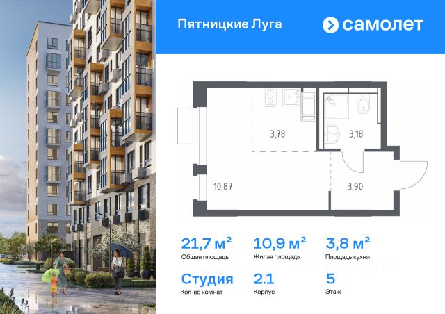 Строим кварталы для жизни с заботой о будущем. Предлагается квартира студия комфорт-класса 21,73 кв.м в корпусе 2.1 на 4 этаже, в ЖК "Пятницкие Луга" Квартира с чистовой отделкой. Доступность дополнительных опций уточняйте у застройщика. Приобрести квартиру возможно по специальным акциям от застройщика, с текущими условиями акций можно ознакомиться в блоке "Акций". Цена динамическая и может отличаться, уточняйте актуальность у застройщика. Жить в проекте "Пятницкие Луга" — значит просыпаться с видом на лес или реку. До Пятницкого шоссе — 5 минут на авто, до метро "Пятницкое шоссе" — 12 минут. В 2025 году появится тоннель с выездом на Путилковское шоссе. Рядом лесопарки и усадьба. На территории комплекса появятся 4 детских сада, 2 школы и поликлиника. Во дворе — сквер, внутренний сад, плейхаб и спортхаб. Квартиры с отделкой. Доступна улучшенная отделка, мебель и декор.