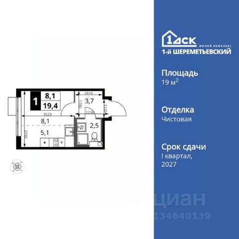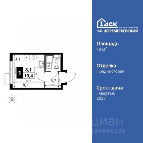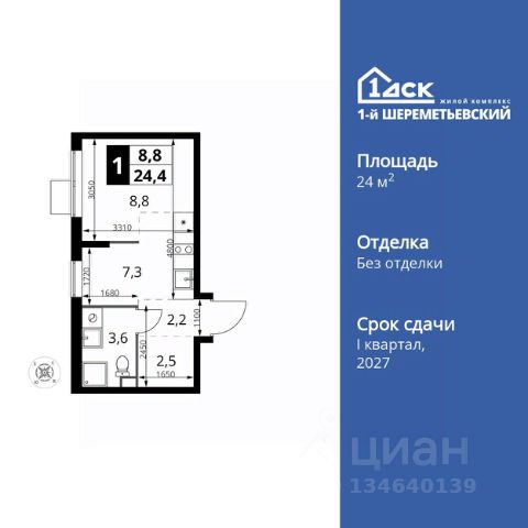 Прямая продажа от застройщика! Жилой Комплекс класса Комфорт Плюс. Продаётся квартира-студия номер 1225 общей площадью 23.6 кв.м. на 6-м этаже 17 этажного здания. Без отделки. Особенности квартиры: - Линейная планировка - максимальная функциональность и удобство. - Гибкая планировка - создайте пространство по своему вкусу. - Место для игры/занятия спортом - идеальное пространство для активных детей. - Можно оборудовать рабочее место - комфорт для работы и учёбы. - Линейная кухня - функциональность и практичность в одном решении. - Ниша под шкаф - компактное и удобное место для вещей. Информация о комплексе: ЖК 1-й Шереметьевский расположен в самом центре Подрезково, от него всего 6 минут пешком до одноименной станции ж/д и планируемой к открытию МЦД-3. В комплексе яркие и уютные, лобби, большая колясочная, лапомойка. Благодаря гостевому санузлу на 1 этаже прогулки станут по-настоящему долгими. Два лифта пассажирский и грузовой.Во всех корпусах 1-го Шереметьевского там устроены кладовые, а в корпусах 3-5 есть подземный паркинг. В ЖК 1-й Шереметьевский разнообразие площадей и планировок. Большие кухни-гостиные: в них два окна или больше. Во всех квартирах площадью от 40 кв.м. и выше спроектировано 2 санузла. Большие остекленные лоджии с отделкой. Система Умная квартира, реализованная в 1-м Шереметьевском. В каждой квартире установлены датчики протечек и запорные вентили с электроприводом, которые самостоятельно перекрывают воду в случае аварии. Мобильное приложение управляет группами электропотребителей: даже если вы забыли утюг включенным, можно обесточить его дистанционно. Транспортная доступность: - Общественный транспорт: До ближайших станций метро Планерной и Войковской около 40-50 минут на автобусе. 6 минут до ЖД станции Подрезково (МЦД-3) - Личный автотранспорт: Удобный выезд на Ленинградское шоссе позволяет быстро добираться до МКАДа и в центр Москвы, до платной трассы М11 и в аэропорт Шереметьево. 3 минуты до Ленинградского ш. 10 минут до платной трассы М11 15 минут до МКАД 20 минут до ст. м Войковская 25 минут до ст. м Планерная Внутренняя инфраструктура: 1-й Шереметьевский не только сокращает время, которое вы будете проводить в дороге. Но и предпринимает многое, чтобы вы меньше ездили и чаще ходили. На первых этажах корпусов разместятся фрешмаркеты и пункты выдачи маркетплейсов, салоны красоты и химчистки, кофейни и пекарни всё, что необходимо изо дня в день, но не заслуживает отдельной поездки на машине или такси. В квартале будут построены собственные школа и детский сад. Школа рассчитана на 1100 учеников. В ней будут 25-метровый бассейн и просторный атриум, медиатека. Детский сад рассчитана на 400 малышей. Здесь стильный дизайн и комфортные группы, большой физкультурный зал и просторный зал для занятия музыкой. Дворы без машин. Безопасные детские площадки. Вдоль корпусов организованы зоны тихого отдыха: детский гомон с далеких каруселей и горок не достигнет окон жителей