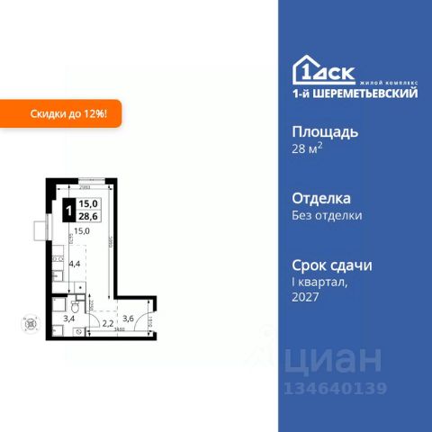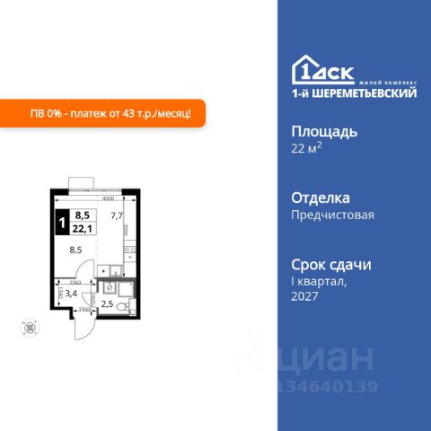 Прямая продажа от застройщика! Жилой Комплекс класса Комфорт Плюс. Продаётся квартира-студия номер 1062 общей площадью 19.3 кв.м. на 8-м этаже 17 этажного здания. Без отделки. Особенности квартиры: - Линейная планировка - максимальная функциональность и удобство. - Гибкая планировка - создайте пространство по своему вкусу. - Ниша под шкаф - компактное и удобное место для вещей. Информация о комплексе: ЖК 1-й Шереметьевский расположен в самом центре Подрезково, от него всего 6 минут пешком до одноименной станции ж/д и планируемой к открытию МЦД-3. В комплексе яркие и уютные, лобби, большая колясочная, лапомойка. Благодаря гостевому санузлу на 1 этаже прогулки станут по-настоящему долгими. Два лифта пассажирский и грузовой.Во всех корпусах 1-го Шереметьевского там устроены кладовые, а в корпусах 3-5 есть подземный паркинг. В ЖК 1-й Шереметьевский разнообразие площадей и планировок. Большие кухни-гостиные: в них два окна или больше. Во всех квартирах площадью от 40 кв.м. и выше спроектировано 2 санузла. Большие остекленные лоджии с отделкой. Система Умная квартира, реализованная в 1-м Шереметьевском. В каждой квартире установлены датчики протечек и запорные вентили с электроприводом, которые самостоятельно перекрывают воду в случае аварии. Мобильное приложение управляет группами электропотребителей: даже если вы забыли утюг включенным, можно обесточить его дистанционно. Транспортная доступность: - Общественный транспорт: До ближайших станций метро Планерной и Войковской около 40-50 минут на автобусе. 6 минут до ЖД станции Подрезково (МЦД-3) - Личный автотранспорт: Удобный выезд на Ленинградское шоссе позволяет быстро добираться до МКАДа и в центр Москвы, до платной трассы М11 и в аэропорт Шереметьево. 3 минуты до Ленинградского ш. 10 минут до платной трассы М11 15 минут до МКАД 20 минут до ст. м Войковская 25 минут до ст. м Планерная Внутренняя инфраструктура: 1-й Шереметьевский не только сокращает время, которое вы будете проводить в дороге. Но и предпринимает многое, чтобы вы меньше ездили и чаще ходили. На первых этажах корпусов разместятся фрешмаркеты и пункты выдачи маркетплейсов, салоны красоты и химчистки, кофейни и пекарни всё, что необходимо изо дня в день, но не заслуживает отдельной поездки на машине или такси. В квартале будут построены собственные школа и детский сад. Школа рассчитана на 1100 учеников. В ней будут 25-метровый бассейн и просторный атриум, медиатека. Детский сад рассчитана на 400 малышей. Здесь стильный дизайн и комфортные группы, большой физкультурный зал и просторный зал для занятия музыкой. Дворы без машин. Безопасные детские площадки. Вдоль корпусов организованы зоны тихого отдыха: детский гомон с далеких каруселей и горок не достигнет окон жителей. В квартале спроектирован закольцованный веломаршрут с понятной навигацией и парковками для двухколесного транспорта. Продам квартиру-студию в новостройке в микрорайоне Подрезково в городе Химки.