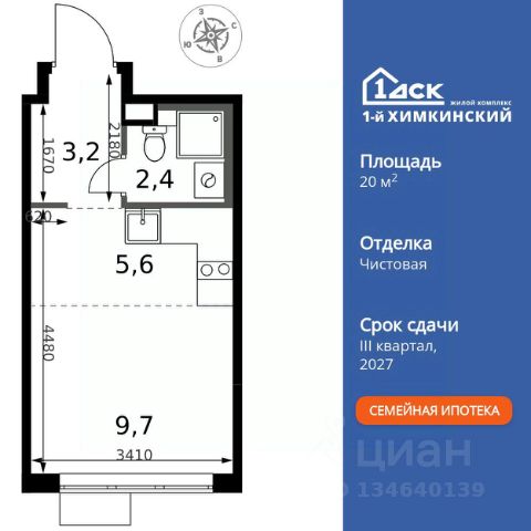 БЕЗ ПЕРВОНАЧАЛЬНОГО ВЗНОСА! Прямая продажа от застройщика! Жилой Комплекс класса Комфорт. Продаётся квартира-студия номер 264 общей площадью 21.7 кв.м. на 2-м этаже 6 этажного здания. Предчистовая отделка. Цена с учётом скидки. Особенности квартиры: - Организуем показ в удобное для вас время! - Линейная планировка - максимальная функциональность и удобство. - Увеличенное количество окон - дополнительное освещение и свежий воздух. - Гардеробная - удобство для хранения и организации вещей. Квартира с предчистовой отделкой. Вам не придется заниматься черновыми и трудоёмкими работы, а чистовую отделку и дизайн - сделайте на свой вкус. Информация о комплексе: "1-й Химкинский": гармония современного города и природы на 102 га у Химкинского леса и канала им. Москвы. Развитая инфраструктура: ТЦ, школы, спорткомплекс с термами и СПА, парк развлечений. Идеальный баланс для жизни в окружении зелени и городского комфорта. Транспортная доступность: ЖК "1-й Химкинский" дает возможность выбрать любой способ передвижения как до города, так и до самых разных объектов, которые могут представлять интерес для его жителей. Не важно, какой способ передвижения вы предпочитаете, успевать всегда и везде можно вне зависимости от выбора транспорта. - 8 мин. пешком (800 м) до остановки "Золотая Арка" -10 мин пешком (1 км) до остановки "Поворот на Ивакино" Внутренняя инфраструктура: Безопасность: закрытые дворы без машин, безбарьерная среда, сквозные подъезды, камеры на детских площадках с трансляцией на смартфон. Отдых: семейный парк развлечений, двухэтажный ТЦ 8 000 м² с фудкортом. Образование: 4 детских сада, 2 муниципальные школы. Спорт: закольцованный веломаршрут, спорткомплекс с термами, тренажерный зал, воркаут зоны. Инфраструктура: поликлиника со станцией скорой помощи, пожарное депо. Паркинг: подземный паркинг, кладовые на -1 этаже, СТО и автомойка на территории. Квартира с предчистовой отделкой - ваш дизайн без черновых работ