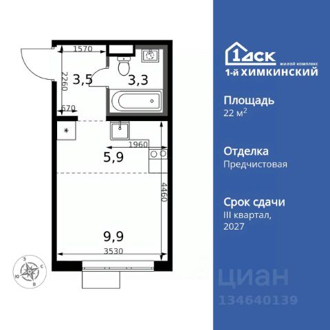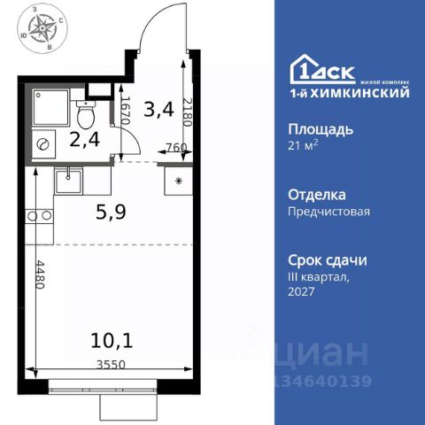 Прямая продажа от застройщика! Жилой Комплекс класса Комфорт. Продаётся квартира-студия номер 345 общей площадью 20.9 кв.м. на 6-м этаже 6 этажного здания. Отделка Whitebox. Цена с учётом скидки. Особенности квартиры: - Линейная планировка - максимальная функциональность и удобство. - Увеличенная высота потолков - ощущение простора и легкости. Квартира с предчистовой отделкой (White box). Вам не придется заниматься черновыми и трудоёмкими работы, а чистовую отделку и дизайн - сделайте на свой вкус. Информация о комплексе: Квартал класса комфорт плюс, где современное городское пространство граничит с удивительной природой вокруг. 1-й Химкинский расположен на территории в 102 га и органично вписан в природное окружение Химкинского леса и канала им. Москвы. В проекте предусмотрена богатая коммерческая инфраструктура с собственным торговым центром, общеобразовательные учреждения и социальные объекты. Изюминкой жилого комплекса будут спортивно-оздоровительный комплекс с термами и SPA и семейный парк развлечений. Транспортная доступность: ЖК "1-й Химкинский" дает возможность выбрать любой способ передвижения как до города, так и до самых разных объектов, которые могут представлять интерес для его жителей. Не важно, какой способ передвижения вы предпочитаете, успевать всегда и везде можно вне зависимости от выбора транспорта. - 8 мин. пешком (800 м) до остановки "Золотая Арка" -10 мин пешком (1 км) до остановки "Поворот на Ивакино" Внутренняя инфраструктура: - Безопасность: закрытые дворы без машин, безбарьерная среда и сквозные подъезды, камеры на детских площадках с возможностью трансляции на смартфоне - Идеальный отдых в кругу семьи: семейный парк развлечений на территории, торговый центр (2-х этажный) общей площадью более 8 тыс. кв. м с фудкортом - Образование: 3 детских сада и современная муниципальная школа на 2450 мест - Спортивная среда: закольцованный веломаршрут с навигацией, спортивный комплекс с термами, закрытый тренажерный зал и зоны ворк-аута - Социальные объекты: поликлиника со станцией скорой помощи, пожарное депо - Подземный паркинг и кладовые помещения на -1 этаже, станция техобслуживания и автомойка на территории