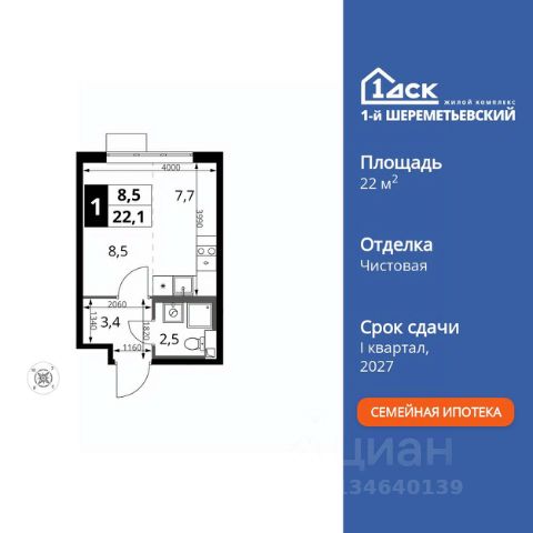 Прямая продажа от застройщика! Жилой Комплекс класса Комфорт Плюс. Продаётся квартира-студия номер 517 общей площадью 23 кв.м. на 6-м этаже 16 этажного здания. Чистовая отделка. Цена с учётом скидки. Особенности квартиры: - Организуем показ в удобное для вас время! - Линейная планировка - максимальная функциональность и удобство. - Увеличенная ширина окна/окон - больше света и визуального простора. - Гибкая планировка - создайте пространство по своему вкусу. - Можно оборудовать рабочее место - комфорт для работы и учёбы. - Линейная кухня - функциональность и практичность в одном решении. - Ниша под шкаф - компактное и удобное место для вещей. Квартира с чистовой отделкой. Раскройте свою индивидуальность в создании своего уникального проекта, а трудоемкий ремонт мы возьмем на себя! Вы идете в ногу со временем и предпочитаете современные, универсальные дизайнерские решения? Или вы любитель строгой лаконичной классики? Тогда наши интерьеры придутся вам по душе! Выбирайте то, что ближе лично Вам и реализуйте свои задумки вместе с нами! Информация о комплексе: ЖК "1-й Шереметьевский" в центре Подрезково: 6 минут пешком до ж/д станции и МЦД-3. Яркие лобби, колясочная, лапомойка и гостевой санузел на первом этаже. Два лифта, кладовые и подземный паркинг в корпусах 3-5. Разнообразие планировок с большими кухнями-гостиными, двумя санузлами от 40 кв.м и остеклёнными лоджиями. Умный дом с защитой от протечек и мобильным управлением электроприборами. Транспортная доступность: - Общественный транспорт: До ближайших станций метро Планерной и Войковской около 40-50 минут на автобусе. 6 минут до ЖД станции Подрезково (МЦД-3) - Личный автотранспорт: Удобный выезд на Ленинградское шоссе позволяет быстро добираться до МКАДа и в центр Москвы, до платной трассы М11 и в аэропорт Шереметьево. - 3 минуты до Ленинградского ш. - 10 минут до платной трассы М11 - 15 минут до МКАД - 20 минут до ст. м Войковская - 25 минут до ст. м Планерная Внутренняя инфраструктура: "1-й Шереметьевский": жизнь в шаговой доступности. На первых этажах - магазины со свежими продуктами, кофейни, химчистки и салоны красоты для повседневных нужд без поездок. Собственная школа на 1100 учеников с бассейном и детский сад на 400 малышей с музыкальным залом. Дворы без машин, безопасные игровые площадки и зоны тихого отдыха. Закольцованный веломаршрут с навигацией и парковками. Всё для комфортной жизни без лишних перемещений. Квартира с чистовой отделкой: ваш стиль без ремонта. Выбирайте современный дизайн или классику - мы воплотим ваши идеи. Готовые интерьеры для уникального дома. Купить квартиру-студию в новостройке с отделкой в микрорайоне Подрезково в городе Химки.