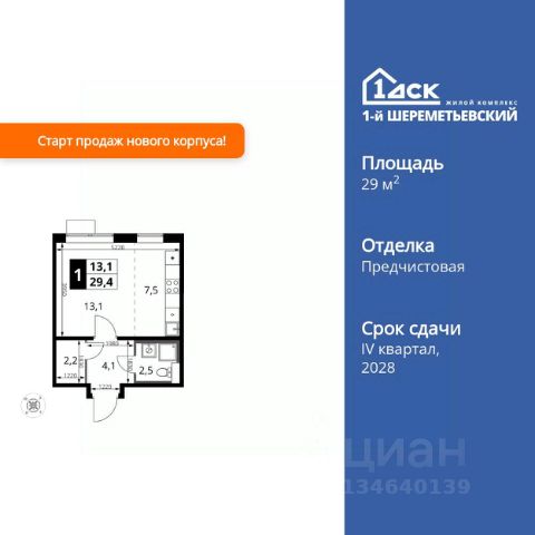 Прямая продажа от застройщика! Жилой Комплекс класса Комфорт Плюс. Продаётся квартира-студия номер 474 общей площадью 23 кв.м. на 12-м этаже 16 этажного здания. Предчистовая отделка. Цена с учётом скидки. Особенности квартиры: - Организуем показ в удобное для вас время! - Линейная планировка - максимальная функциональность и удобство. - Увеличенная ширина окна/окон - больше света и визуального простора. - Гибкая планировка - создайте пространство по своему вкусу. - Можно оборудовать рабочее место - комфорт для работы и учёбы. - Линейная кухня - функциональность и практичность в одном решении. - Ниша под шкаф - компактное и удобное место для вещей. Квартира с предчистовой отделкой. Вам не придется заниматься черновыми и трудоёмкими работы, а чистовую отделку и дизайн - сделайте на свой вкус. Информация о комплексе: ЖК "1-й Шереметьевский" в центре Подрезково: 6 минут пешком до ж/д станции и МЦД-3. Яркие лобби, колясочная, лапомойка и гостевой санузел на первом этаже. Два лифта, кладовые и подземный паркинг в корпусах 3-5. Разнообразие планировок с большими кухнями-гостиными, двумя санузлами от 40 кв.м и остеклёнными лоджиями. Умный дом с защитой от протечек и мобильным управлением электроприборами. Транспортная доступность: - Общественный транспорт: До ближайших станций метро Планерной и Войковской около 40-50 минут на автобусе. 6 минут до ЖД станции Подрезково (МЦД-3) - Личный автотранспорт: Удобный выезд на Ленинградское шоссе позволяет быстро добираться до МКАДа и в центр Москвы, до платной трассы М11 и в аэропорт Шереметьево. - 3 минуты до Ленинградского ш. - 10 минут до платной трассы М11 - 15 минут до МКАД - 20 минут до ст. м Войковская - 25 минут до ст. м Планерная Внутренняя инфраструктура: "1-й Шереметьевский": жизнь в шаговой доступности. На первых этажах - магазины со свежими продуктами, кофейни, химчистки и салоны красоты для повседневных нужд без поездок. Собственная школа на 1100 учеников с бассейном и детский сад на 400 малышей с музыкальным залом. Дворы без машин, безопасные игровые площадки и зоны тихого отдыха. Закольцованный веломаршрут с навигацией и парковками. Всё для комфортной жизни без лишних перемещений. Квартира с предчистовой отделкой - ваш дизайн без черновых работ Квартира-студия в новостройке в Химках.