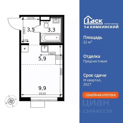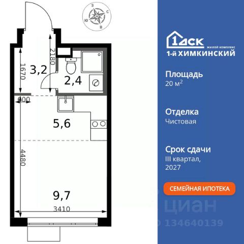 БЕЗ ПЕРВОНАЧАЛЬНОГО ВЗНОСА! Прямая продажа от застройщика! Жилой Комплекс класса Комфорт. Продаётся квартира-студия номер 264 общей площадью 21.7 кв.м. на 2-м этаже 6 этажного здания. Предчистовая отделка. Цена с учётом скидки. Особенности квартиры: - Организуем показ в удобное для вас время! - Линейная планировка - максимальная функциональность и удобство. - Увеличенное количество окон - дополнительное освещение и свежий воздух. - Гардеробная - удобство для хранения и организации вещей. Квартира с предчистовой отделкой. Вам не придется заниматься черновыми и трудоёмкими работы, а чистовую отделку и дизайн - сделайте на свой вкус. Информация о комплексе: "1-й Химкинский": гармония современного города и природы на 102 га у Химкинского леса и канала им. Москвы. Развитая инфраструктура: ТЦ, школы, спорткомплекс с термами и СПА, парк развлечений. Идеальный баланс для жизни в окружении зелени и городского комфорта. Транспортная доступность: ЖК "1-й Химкинский" дает возможность выбрать любой способ передвижения как до города, так и до самых разных объектов, которые могут представлять интерес для его жителей. Не важно, какой способ передвижения вы предпочитаете, успевать всегда и везде можно вне зависимости от выбора транспорта. - 8 мин. пешком (800 м) до остановки "Золотая Арка" -10 мин пешком (1 км) до остановки "Поворот на Ивакино" Внутренняя инфраструктура: Безопасность: закрытые дворы без машин, безбарьерная среда, сквозные подъезды, камеры на детских площадках с трансляцией на смартфон. Отдых: семейный парк развлечений, двухэтажный ТЦ 8 000 м² с фудкортом. Образование: 4 детских сада, 2 муниципальные школы. Спорт: закольцованный веломаршрут, спорткомплекс с термами, тренажерный зал, воркаут зоны. Инфраструктура: поликлиника со станцией скорой помощи, пожарное депо. Паркинг: подземный паркинг, кладовые на -1 этаже, СТО и автомойка на территории. Квартира с предчистовой отделкой - ваш дизайн без черновых работ Купить квартиру-студию от застройщика в городском округе Химках Московской области.