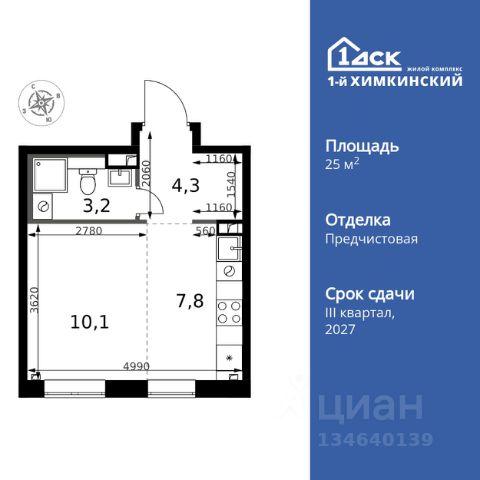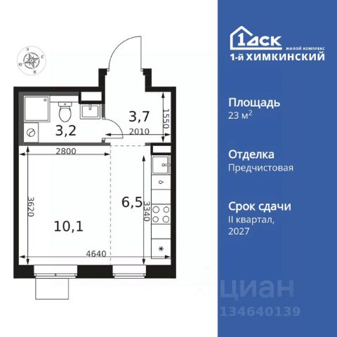 Передача ключей в 2025 году. Запланировано строительство школ, детских садов и поликлиник. Квартира-студия с отделкой в городском округе Химках Московской области.