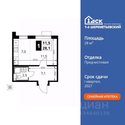 БЕЗ ПЕРВОНАЧАЛЬНОГО ВЗНОСА! Прямая продажа от застройщика! Жилой Комплекс класса Комфорт. Продаётся квартира-студия номер 566 общей площадью 19.4 кв.м. на 6-м этаже 17 этажного здания. Отделка Whitebox. Особенности квартиры: - Линейная планировка - максимальная функциональность и удобство. - Ниша под шкаф - компактное и удобное место для вещей. Квартира с предчистовой отделкой (White box). Вам не придется заниматься черновыми и трудоёмкими работы, а чистовую отделку и дизайн - сделайте на свой вкус. Информация о комплексе: Квартал класса комфорт плюс, где современное городское пространство граничит с удивительной природой вокруг. 1-й Химкинский расположен на территории в 102 га и органично вписан в природное окружение Химкинского леса и канала им. Москвы. В проекте предусмотрена богатая коммерческая инфраструктура с собственным торговым центром, общеобразовательные учреждения и социальные объекты. Изюминкой жилого комплекса будут спортивно-оздоровительный комплекс с термами и SPA и семейный парк развлечений. Транспортная доступность: ЖК "1-й Химкинский" дает возможность выбрать любой способ передвижения как до города, так и до самых разных объектов, которые могут представлять интерес для его жителей. Не важно, какой способ передвижения вы предпочитаете, успевать всегда и везде можно вне зависимости от выбора транспорта. - 8 мин. пешком (800 м) до остановки "Золотая Арка" -10 мин пешком (1 км) до остановки "Поворот на Ивакино" Внутренняя инфраструктура: - Безопасность: закрытые дворы без машин, безбарьерная среда и сквозные подъезды, камеры на детских площадках с возможностью трансляции на смартфоне - Идеальный отдых в кругу семьи: семейный парк развлечений на территории, торговый центр (2-х этажный) общей площадью более 8 тыс. кв. м с фудкортом - Образование: 3 детских сада и современная муниципальная школа на 2450 мест - Спортивная среда: закольцованный веломаршрут с навигацией, спортивный комплекс с термами, закрытый тренажерный зал и зоны ворк-аута - Социальные объекты: поликлиника со станцией скорой помощи, пожарное депо - Подземный паркинг и кладовые помещения на -1 этаже, станция техобслуживания и автомойка на территории Продам квартиру-студию с отделкой в городском округе Химках Московской области.